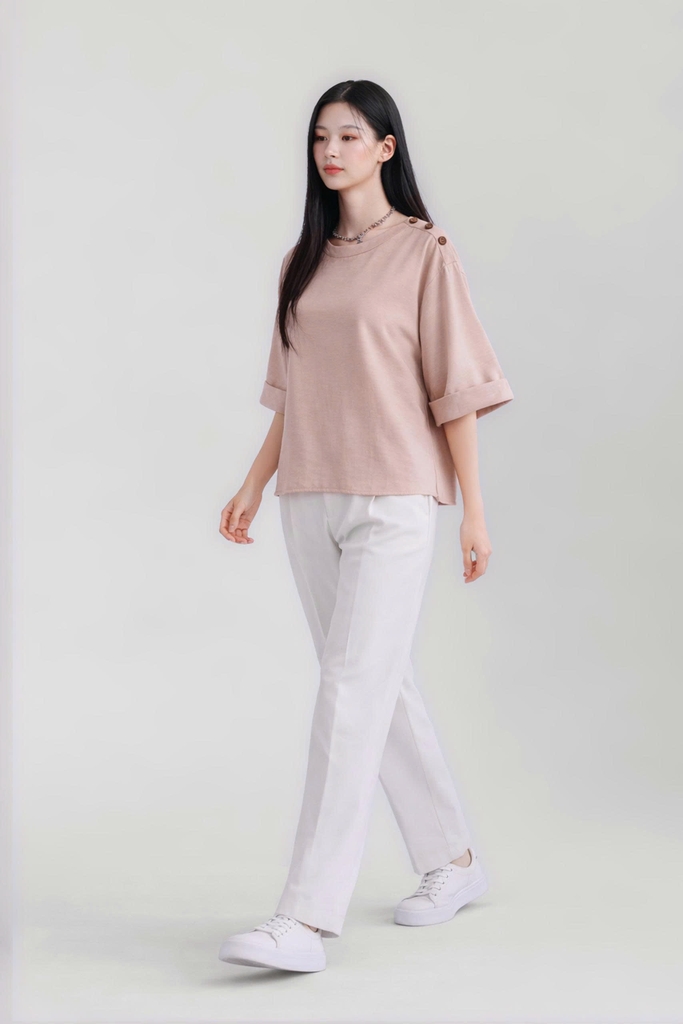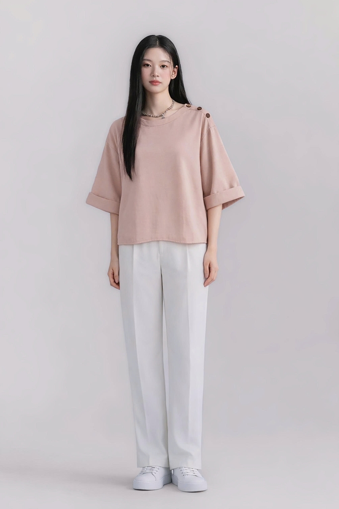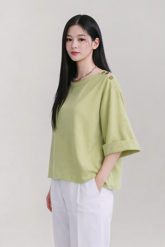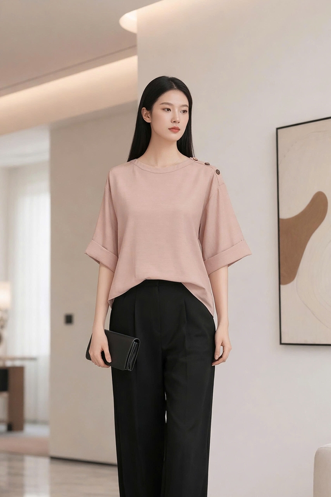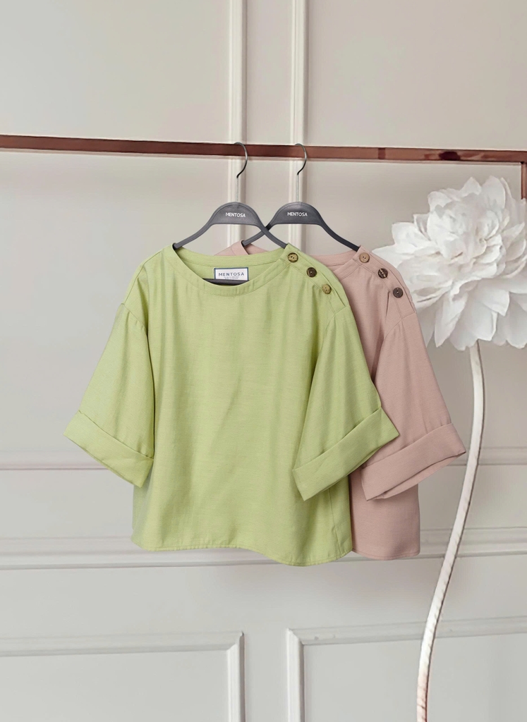 Áo Basic Vai Phối Nút Mentosa 2 Màu-AKMTS060925L1