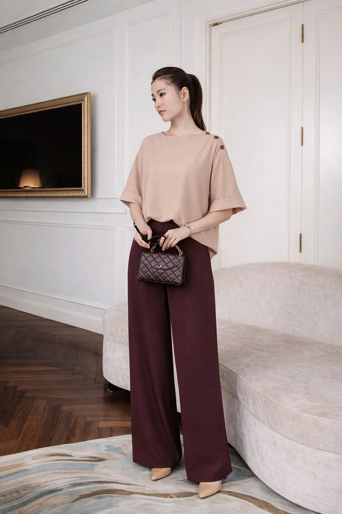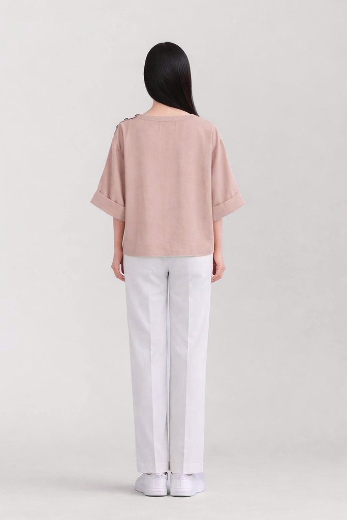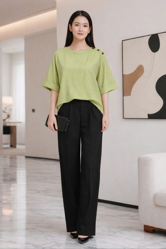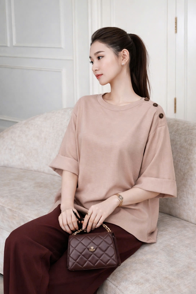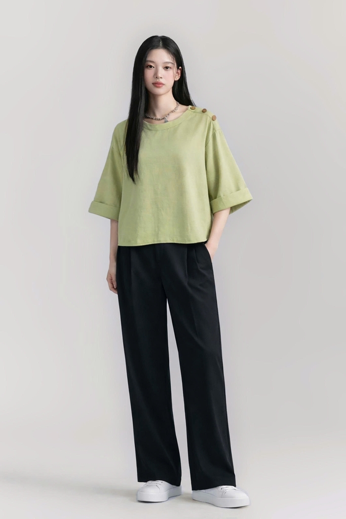 Áo Basic Vai Phối Nút Mentosa 2 Màu-AKMTS060925L1