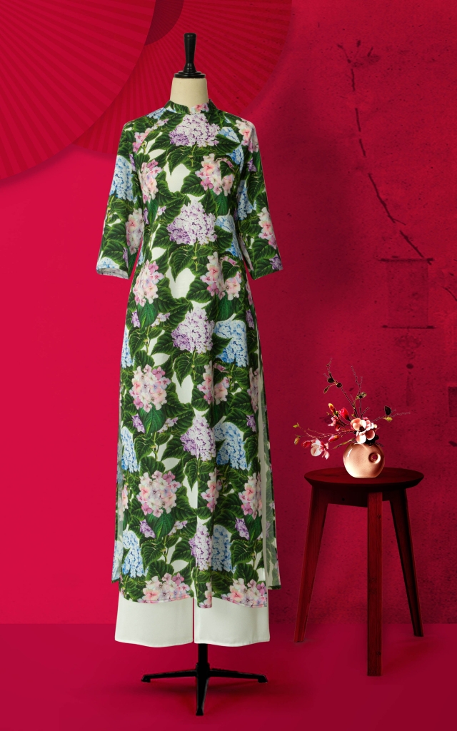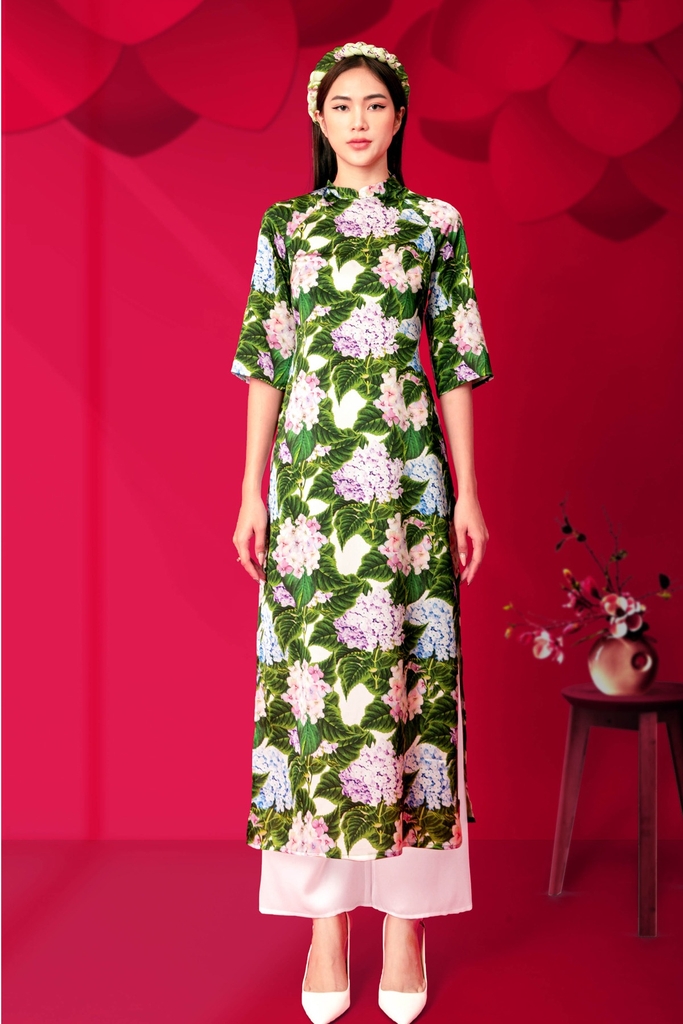 Áo Dài Cách Tân Katosa Màu Hoa Cẩm Tú Cầu-KTS221511CT