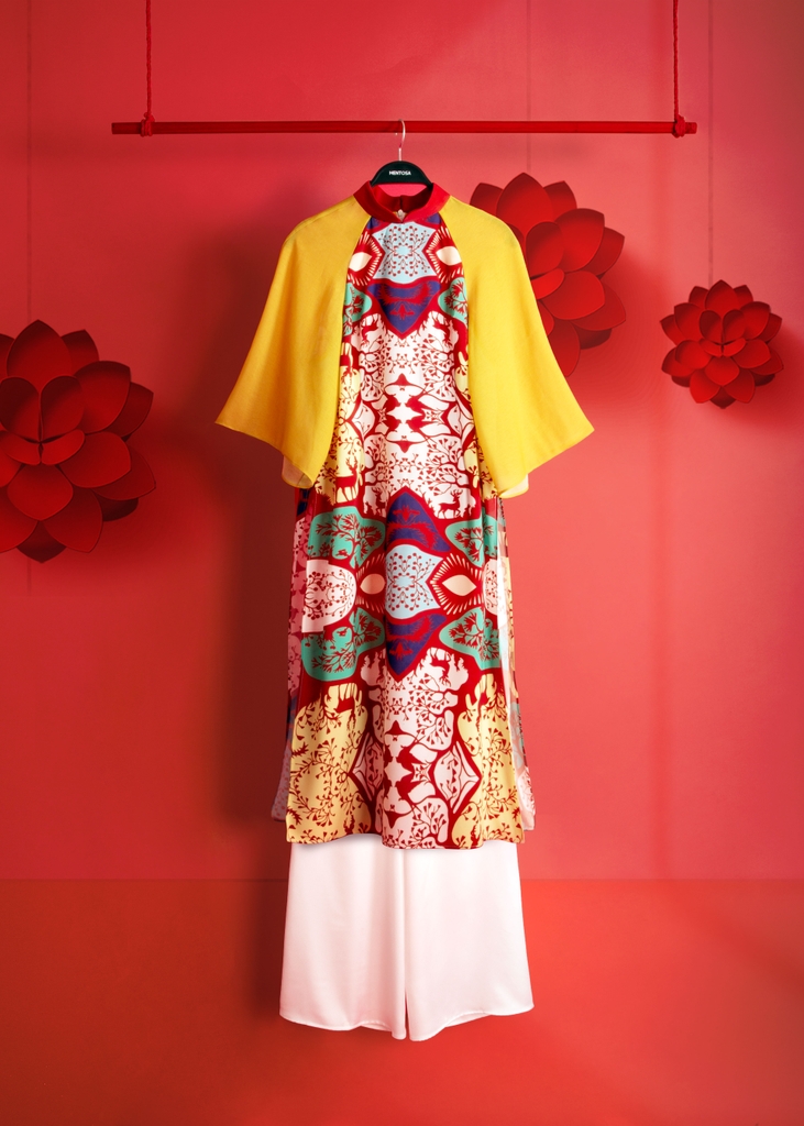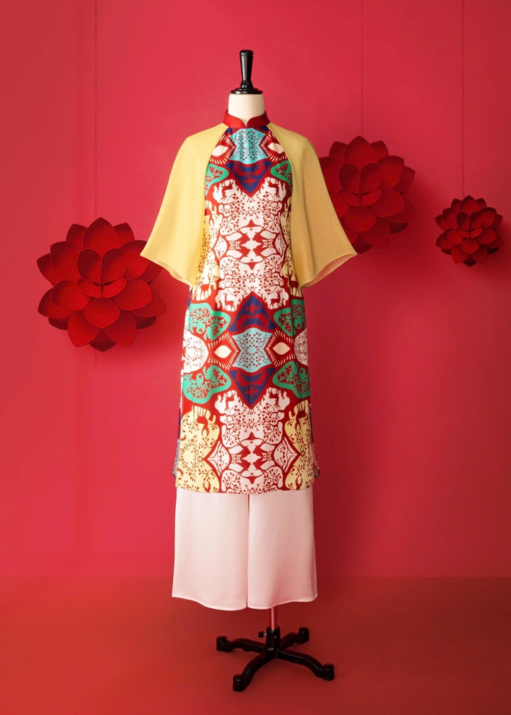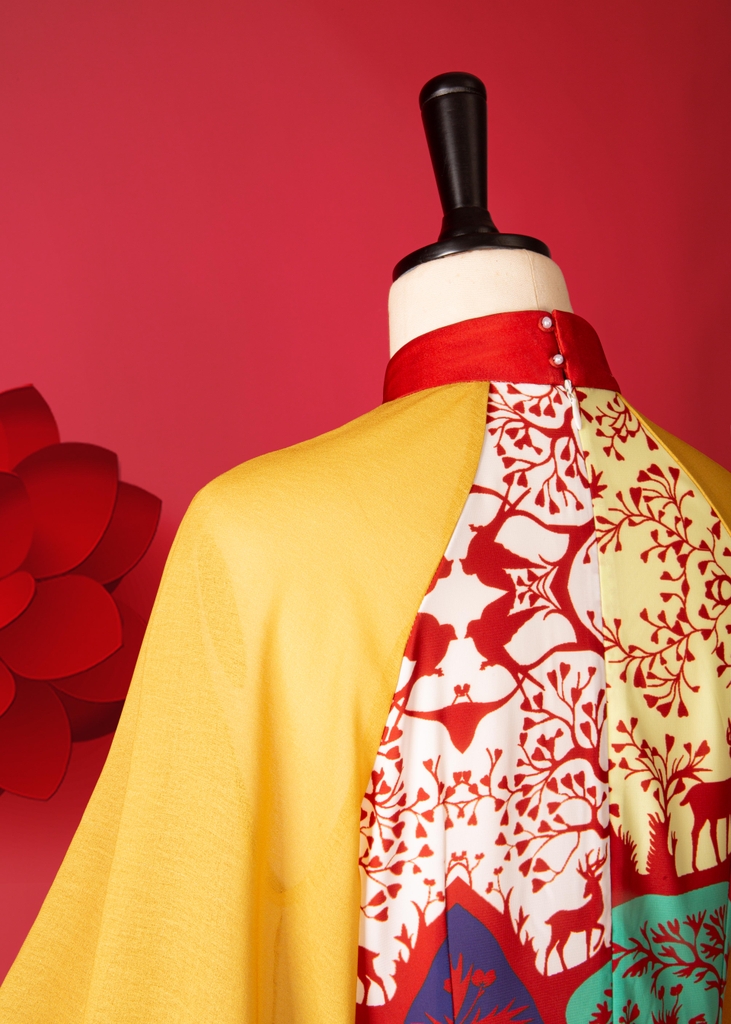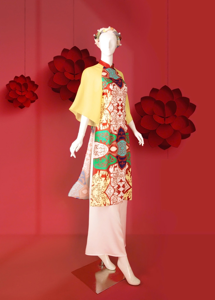 - Kiểu dáng: áo dài tay cánh tiên, cổ đứng