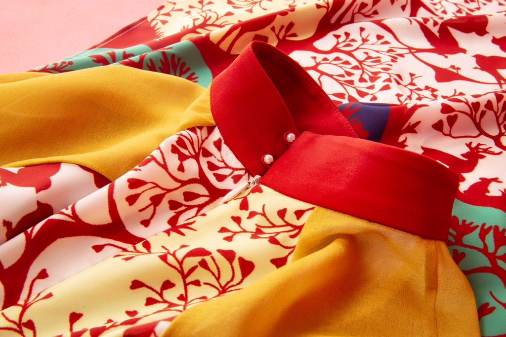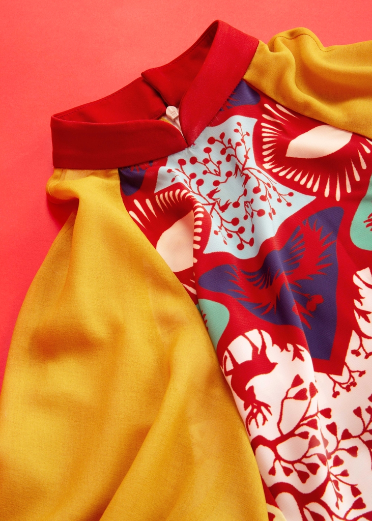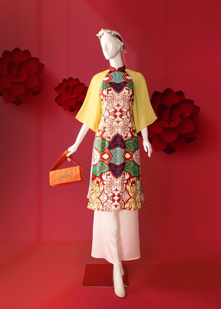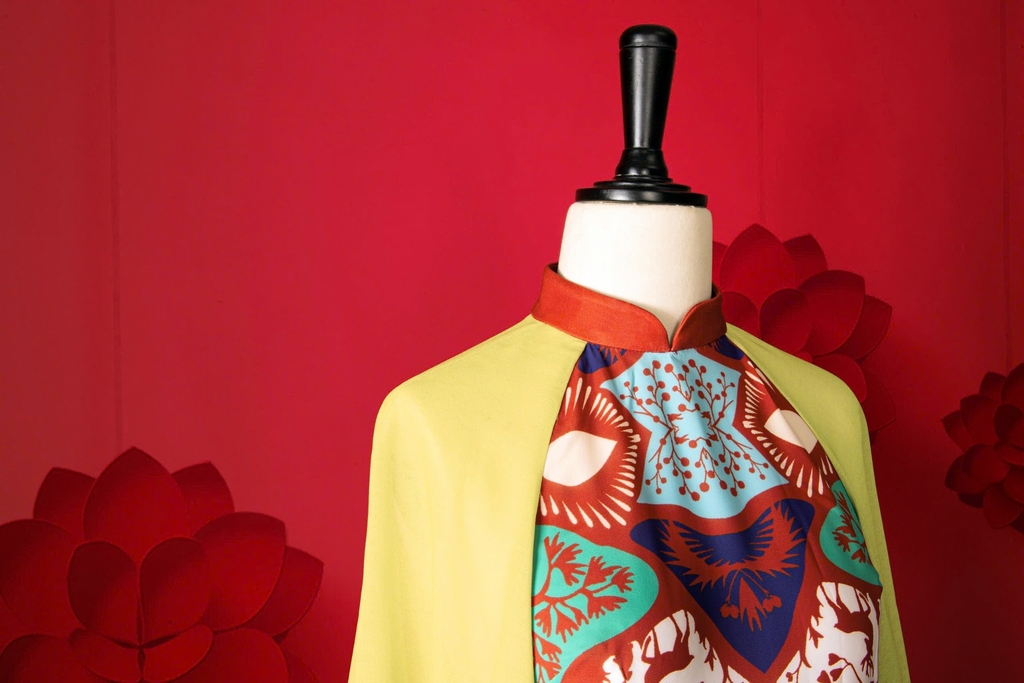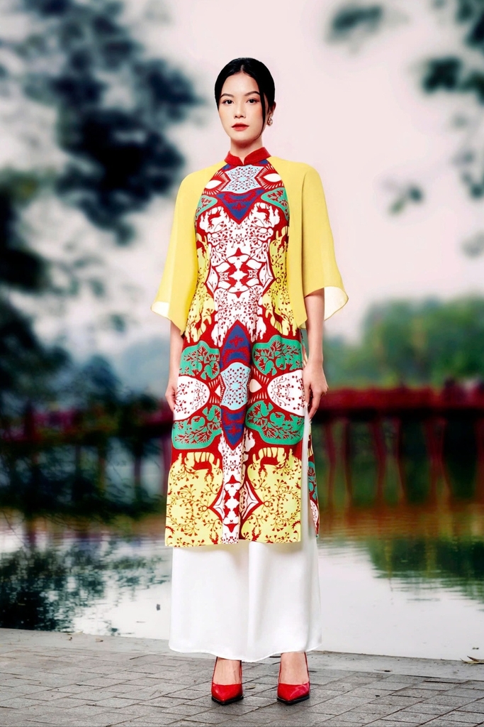 - Kiểu dáng: áo dài tay cánh tiên, cổ đứng