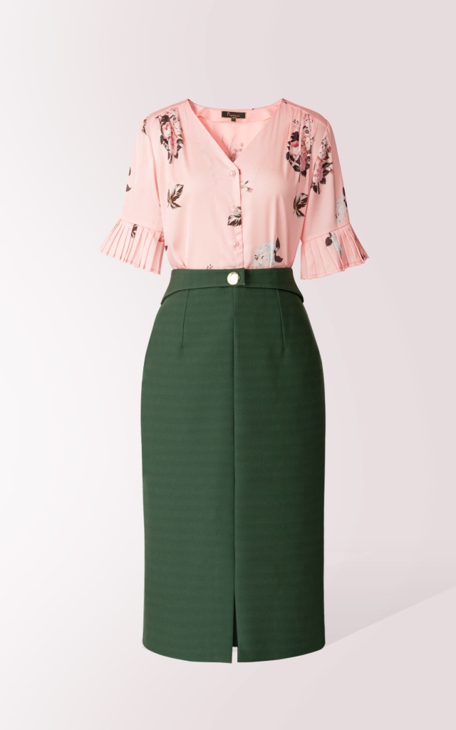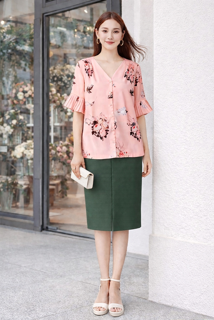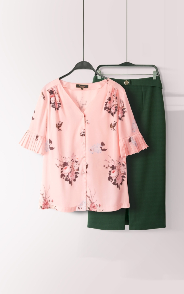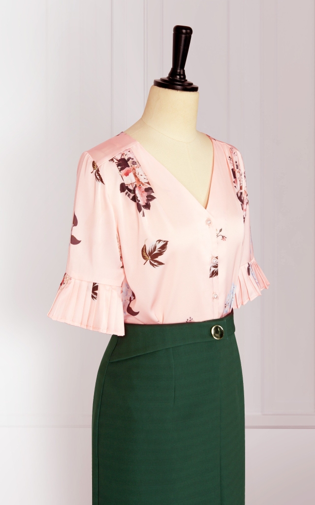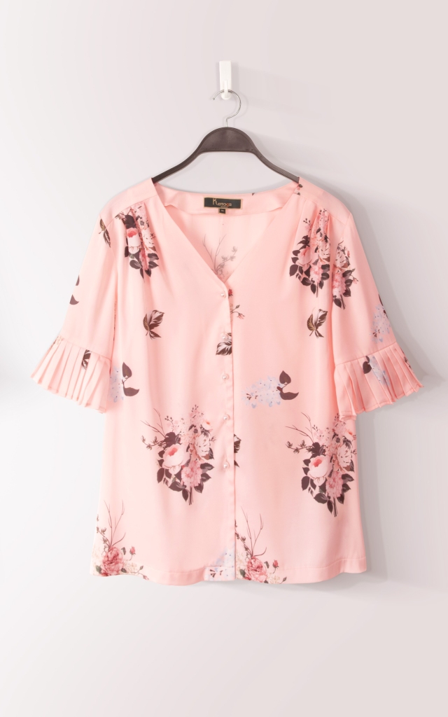 Áo Katosa 1 Màu Tay Áo Dập Ly Phối Họa Tiết-KTS2300104A