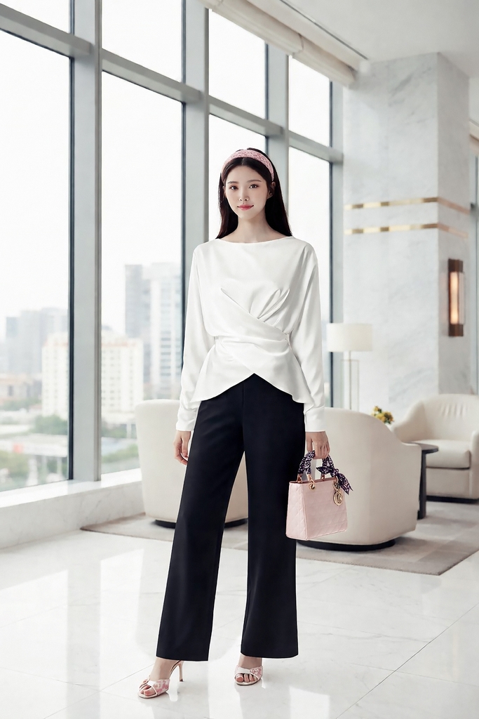 Áo Lụa Mentosa Drape Chéo Tà 3 Màu-ALMTS131025L1