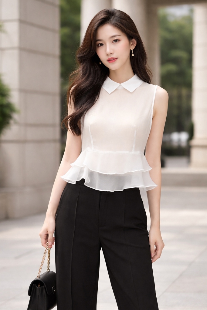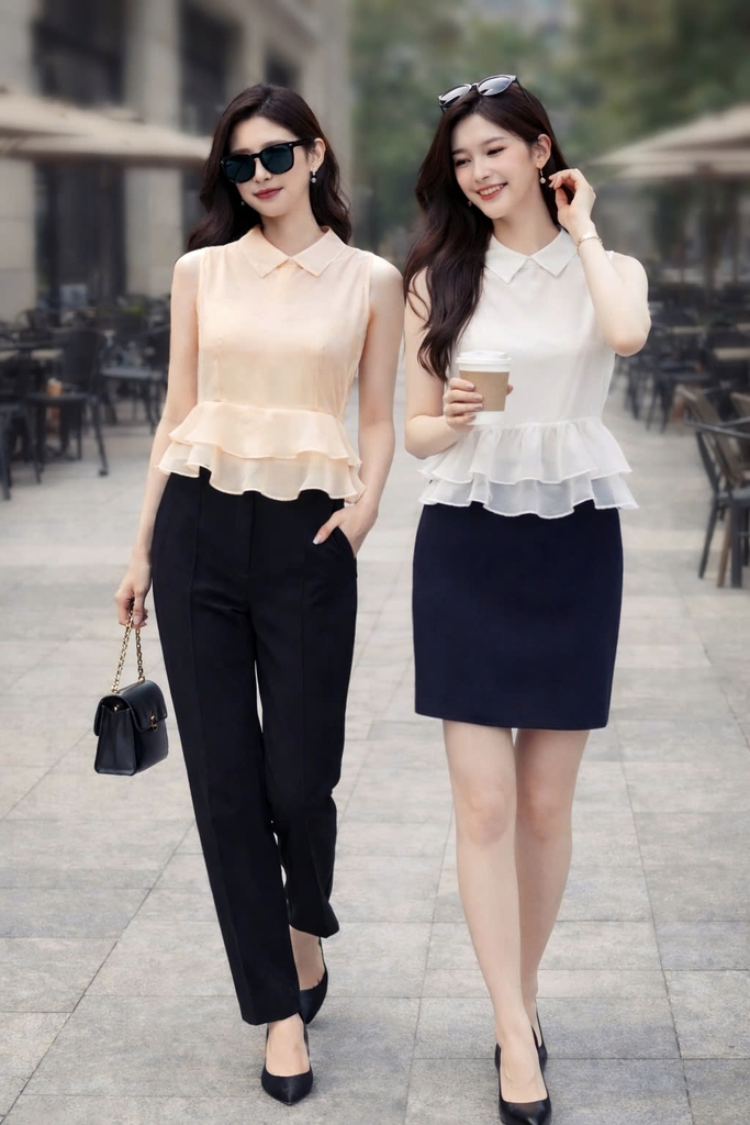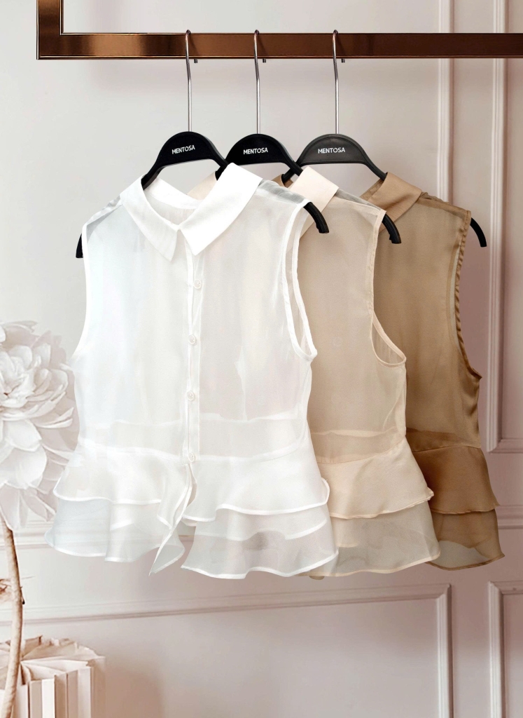 - Kiểu dáng: Áo sát nách cổ đức phối bèo sang trọng