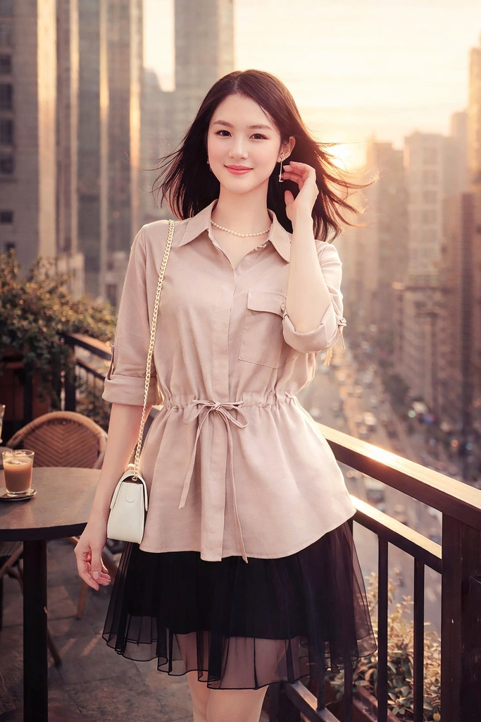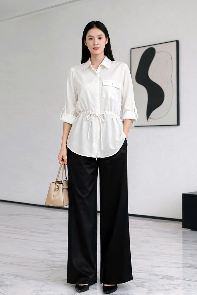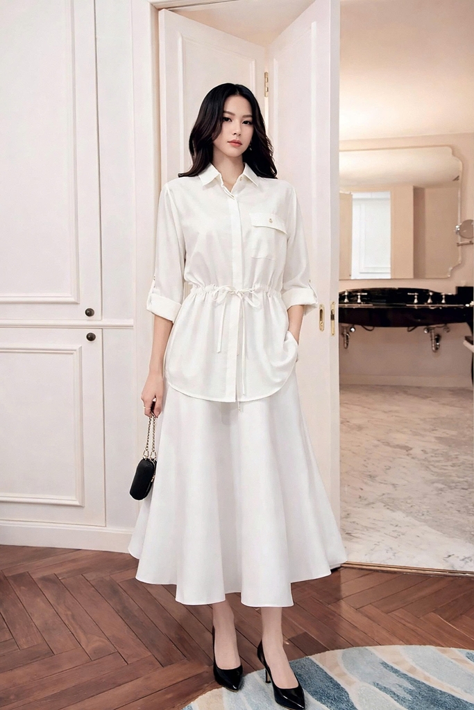 Áo Mentosa Sơ Mi Rút Eo 2 Màu-AMTS070925S1