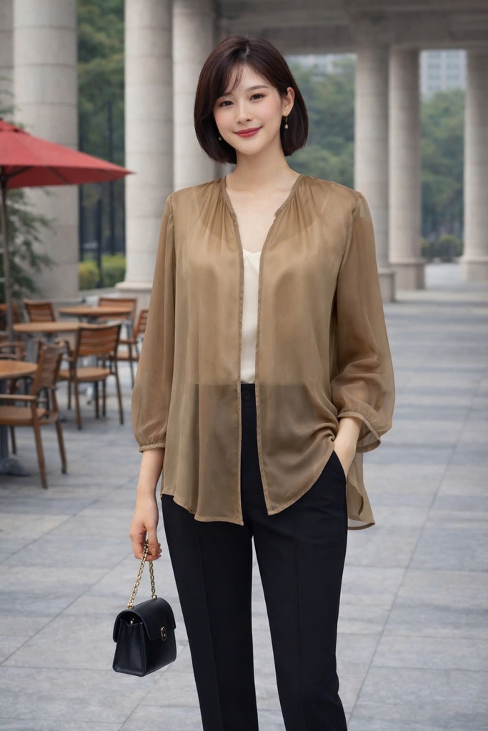 Áo Voan Mentosa Tay Phồng 2 Màu-AKMTS220925L1