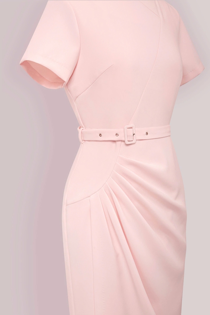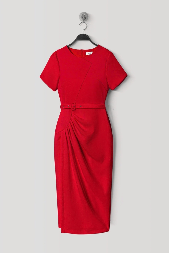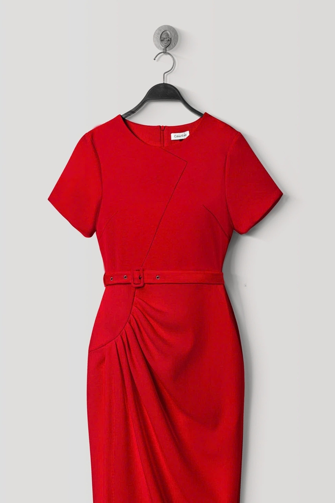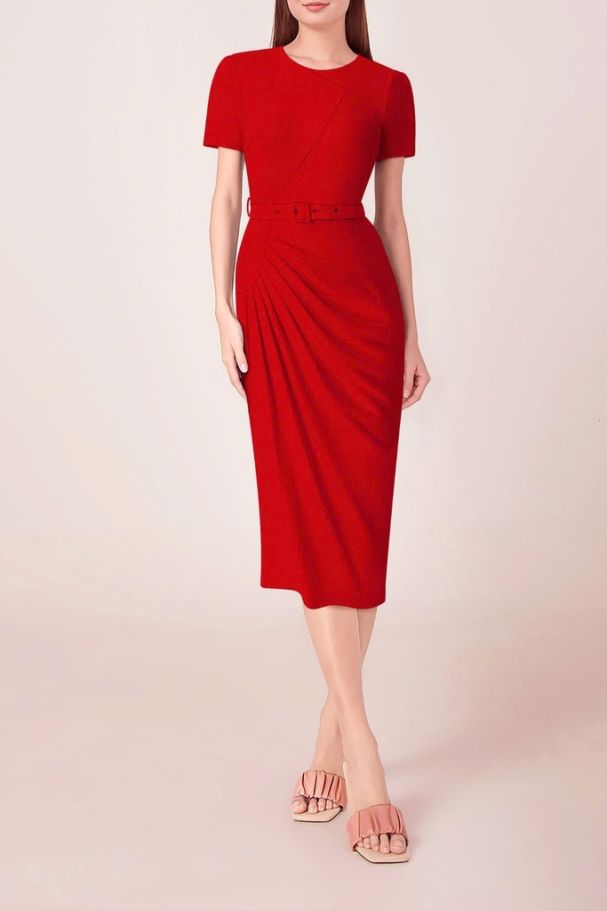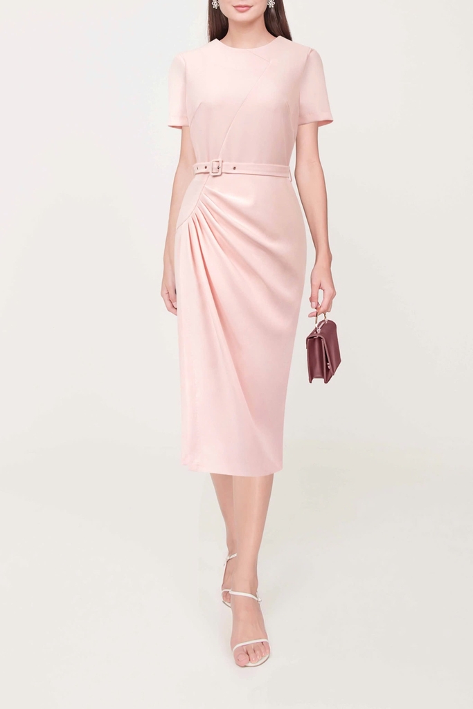 - Kiểu dáng: Đầm tùng xếp ly, tay con cổ tròn, phom bút trì có kèm day belt đóng mắc cáo
