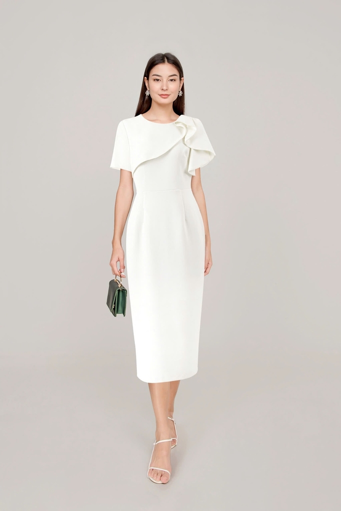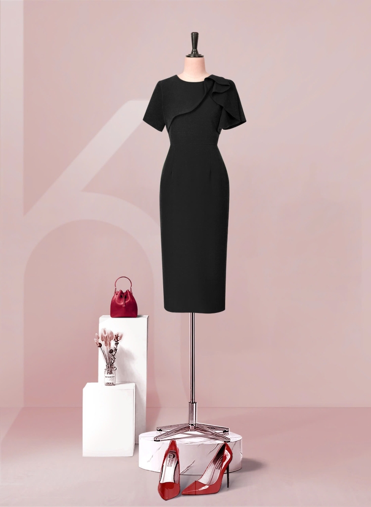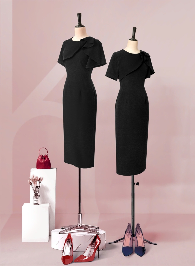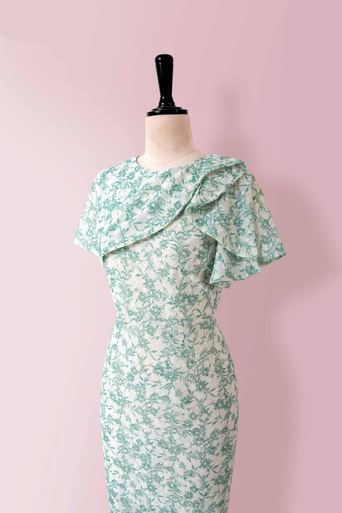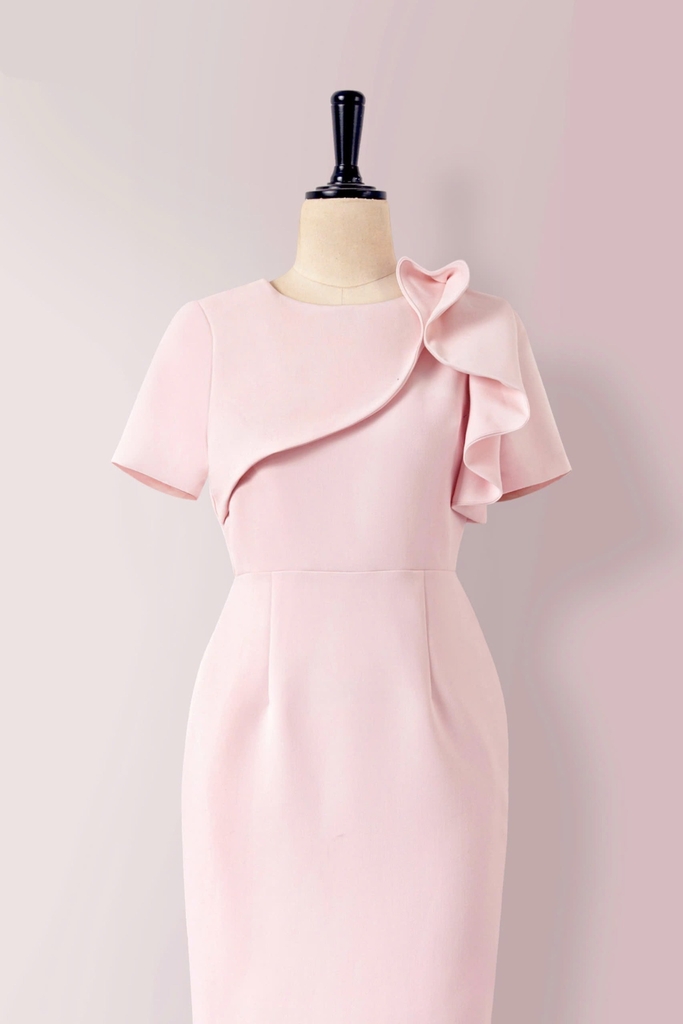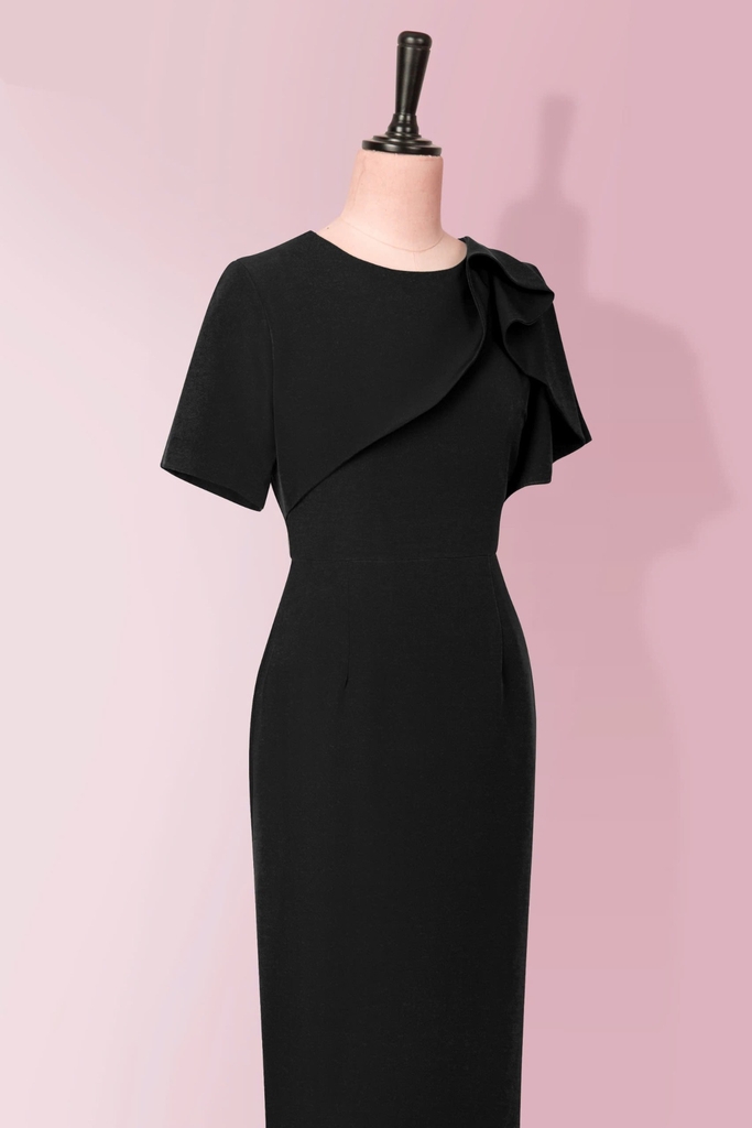 - Kiểu dáng: Đầm Phom bút chì, cách tân cổ bèo tròn, tay con, có sẻ tà thân sau