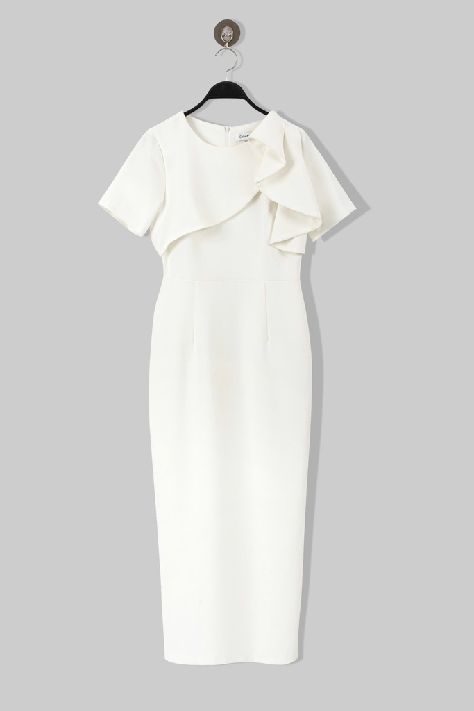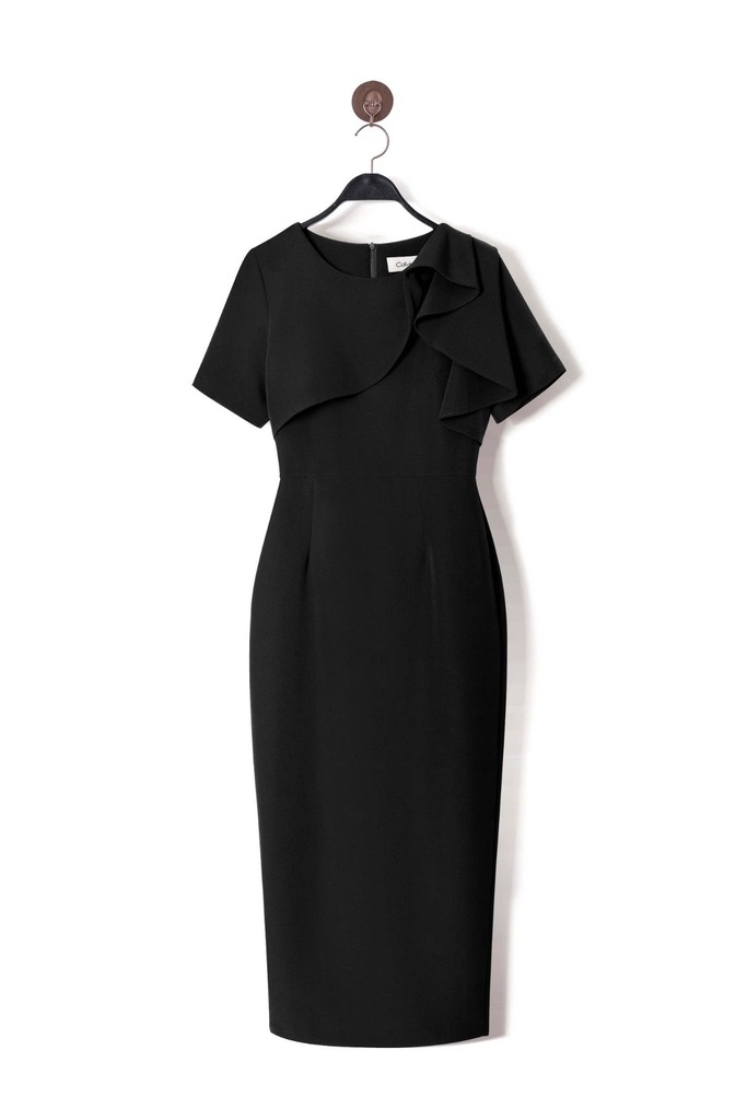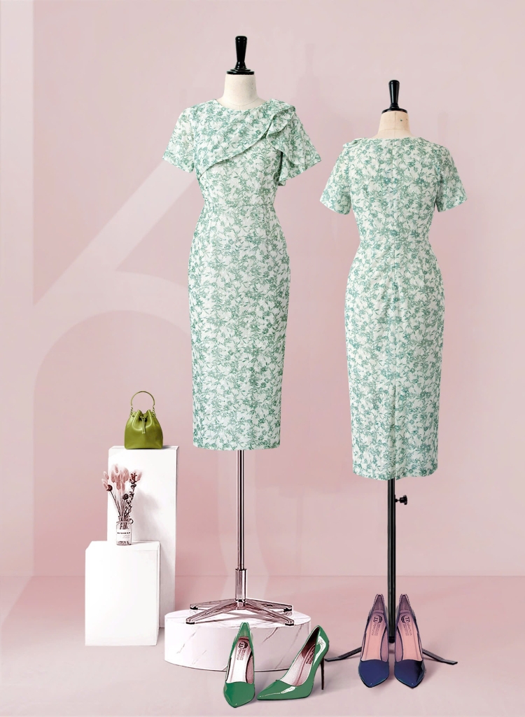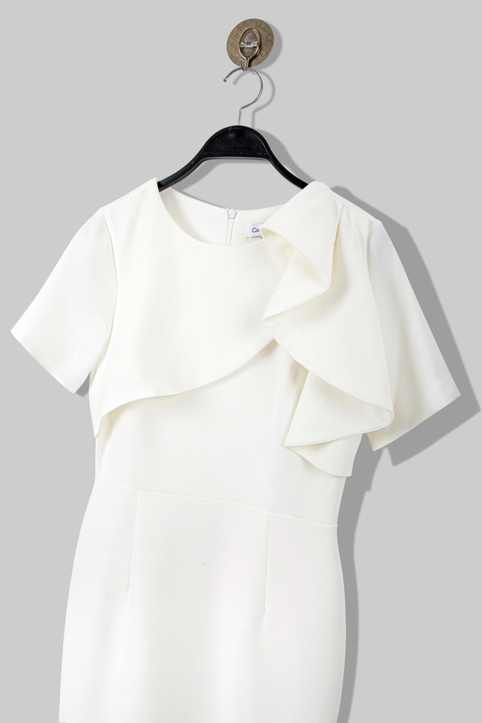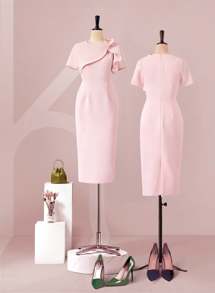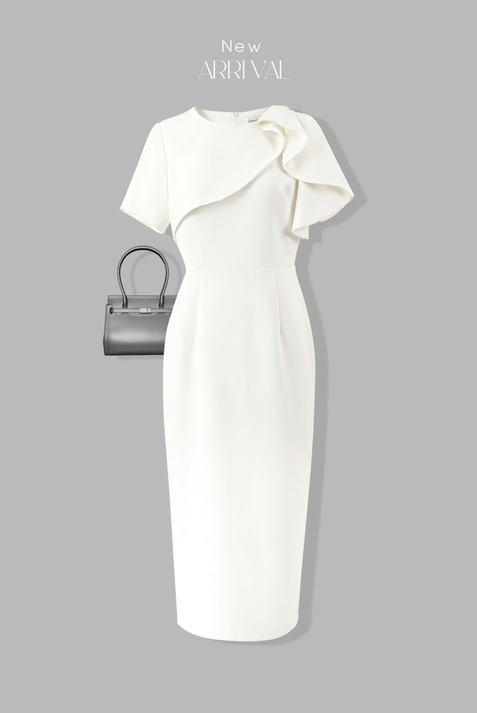 - Kiểu dáng: Đầm Phom bút chì, cách tân cổ bèo tròn, tay con, có sẻ tà thân sau