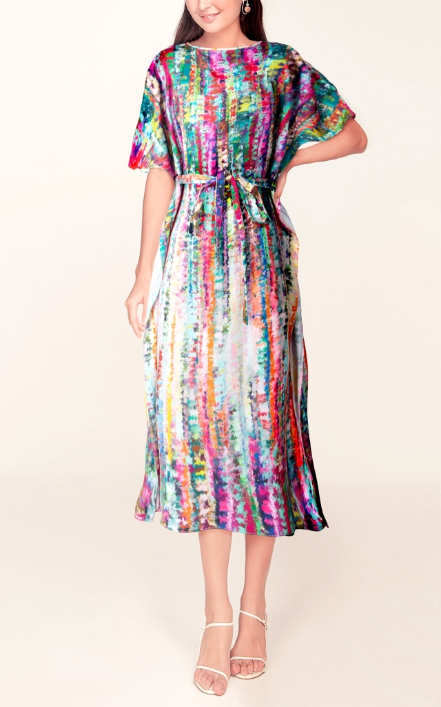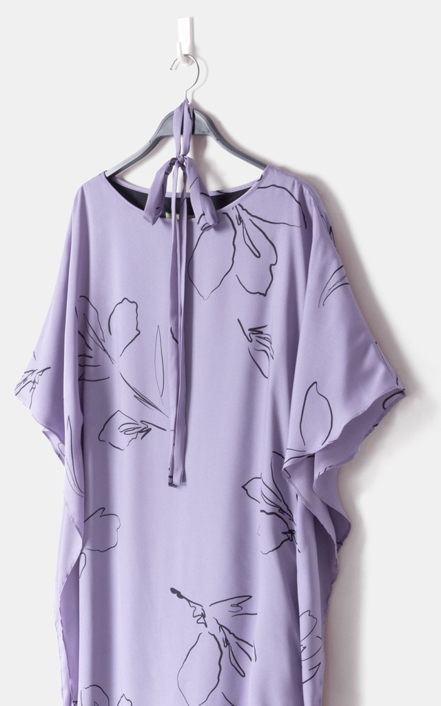 - Kiểu dáng: Phom đầm rộng, tay liền
