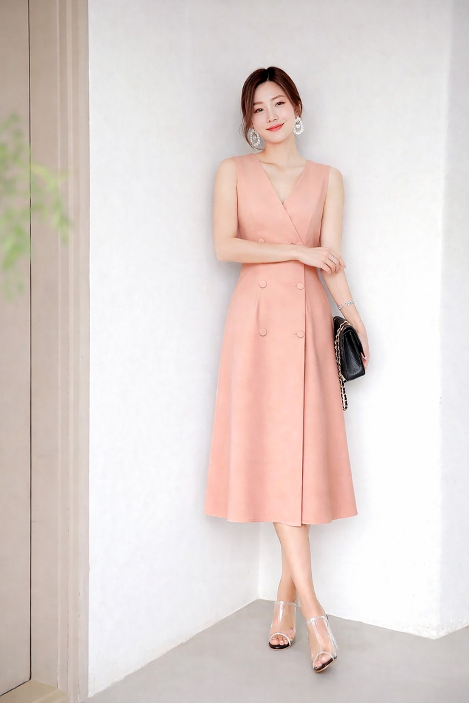 – Kiểu dáng: Đầm sách nách phối nút dáng xòe sang trọng, lịch lãm và quyến rũ