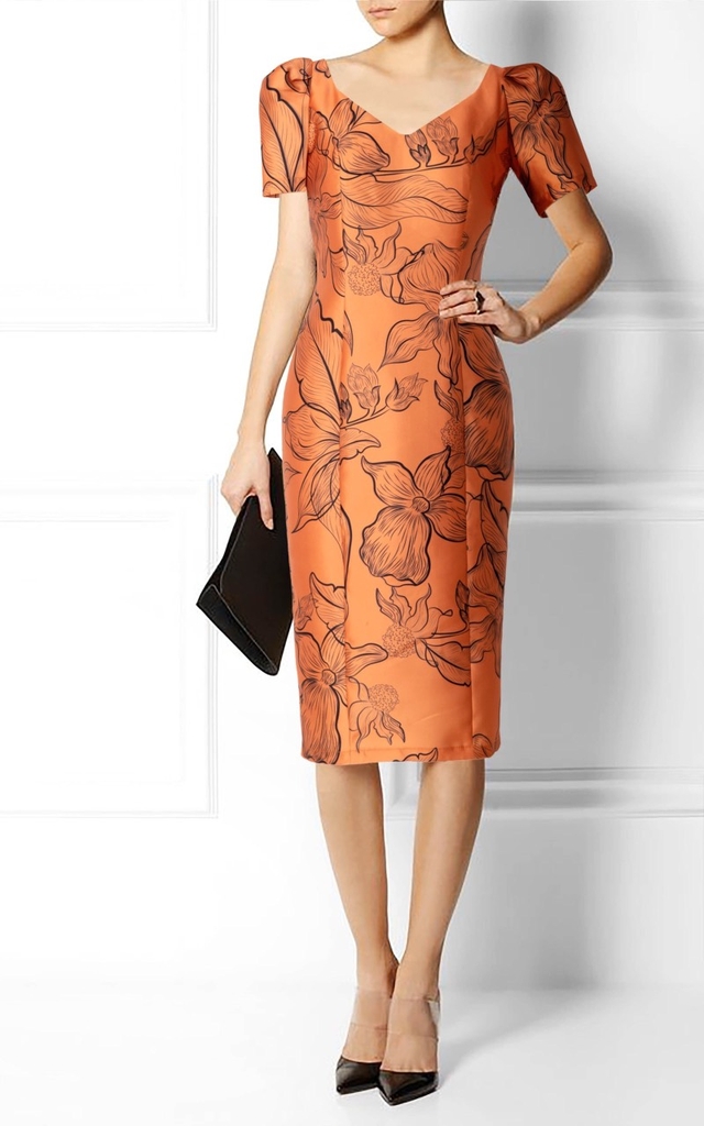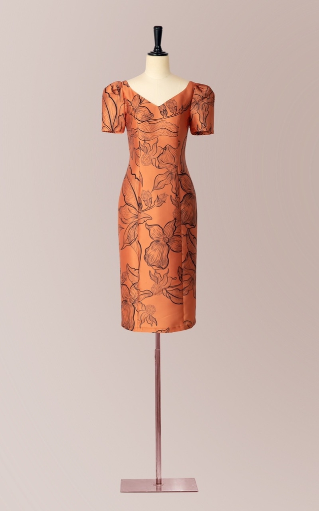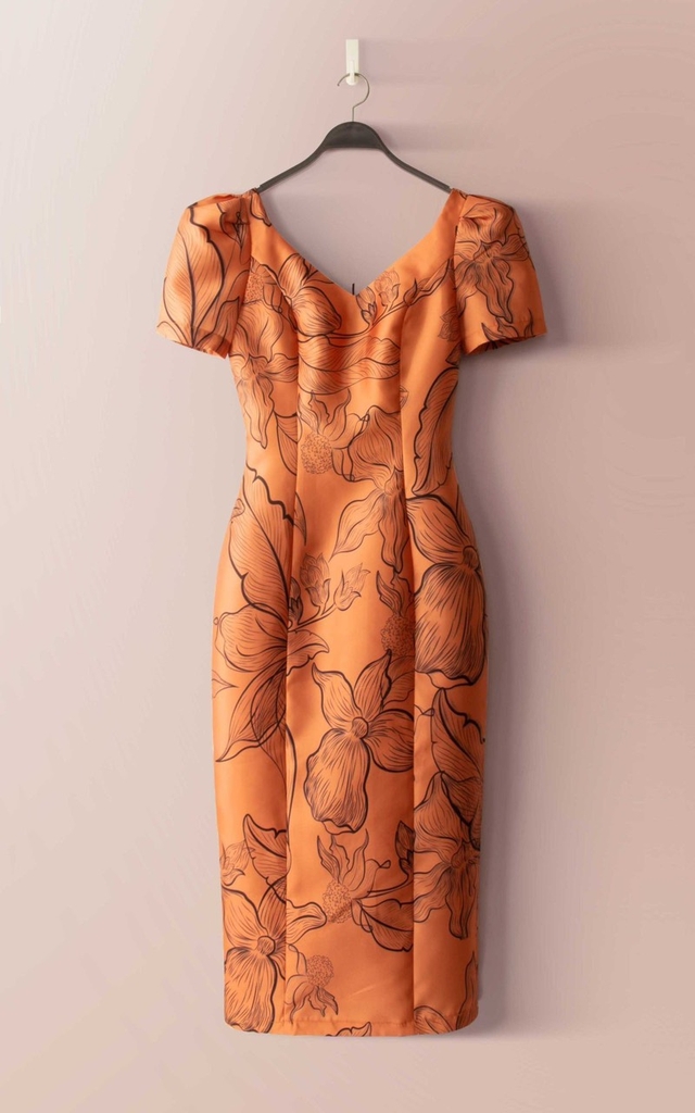 NGỰC-EO-DÀI VÁY– Màu sắc: Cam họa tiết hoa