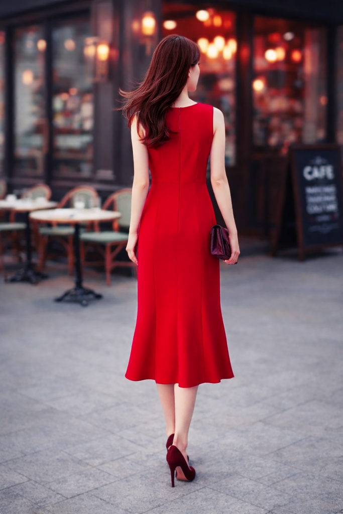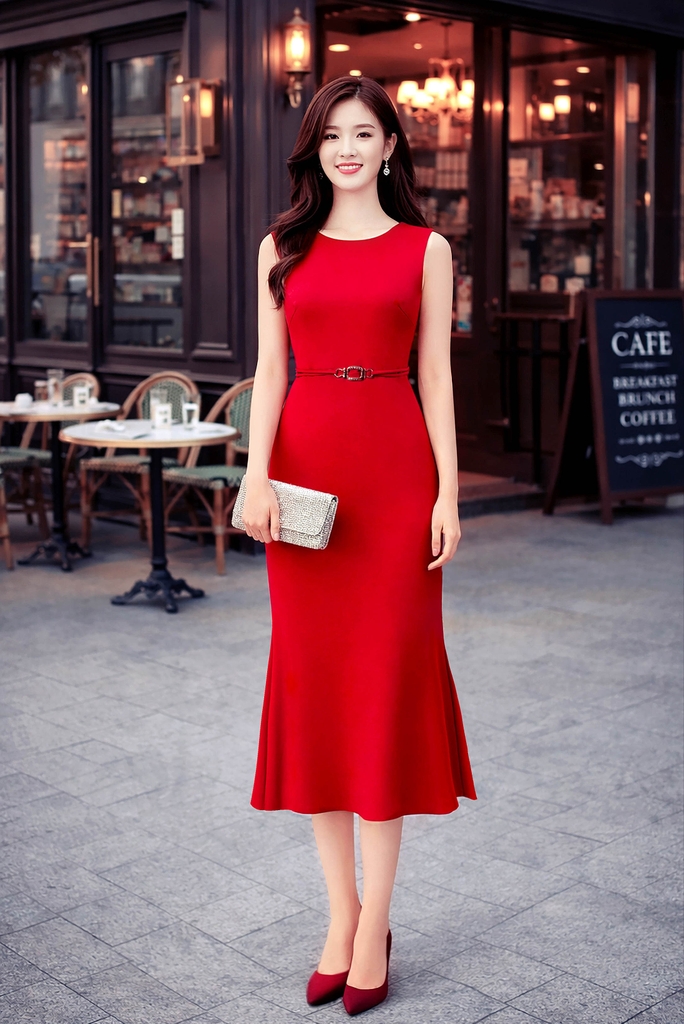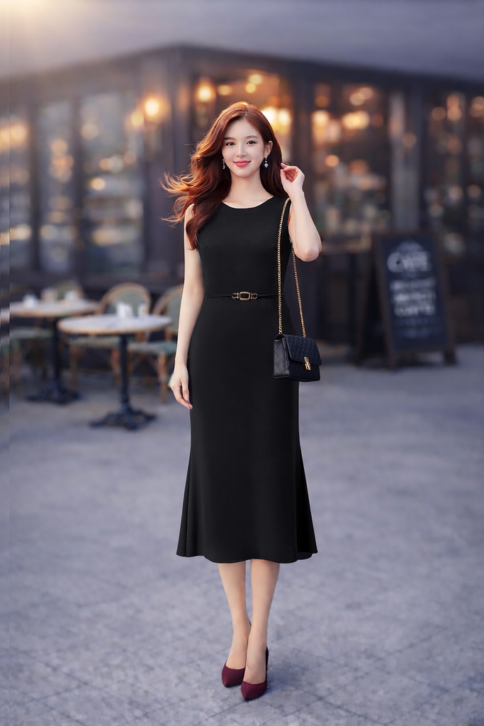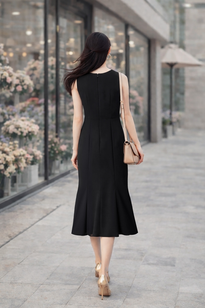 - Kiểu dáng: đầm sát nách đuôi cá, cổ tròn