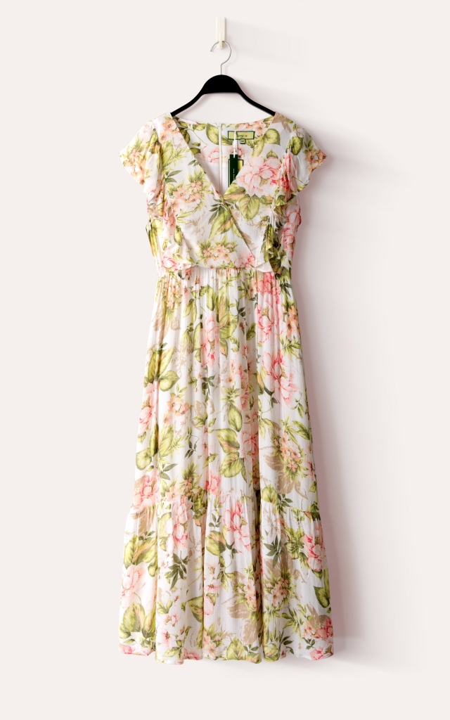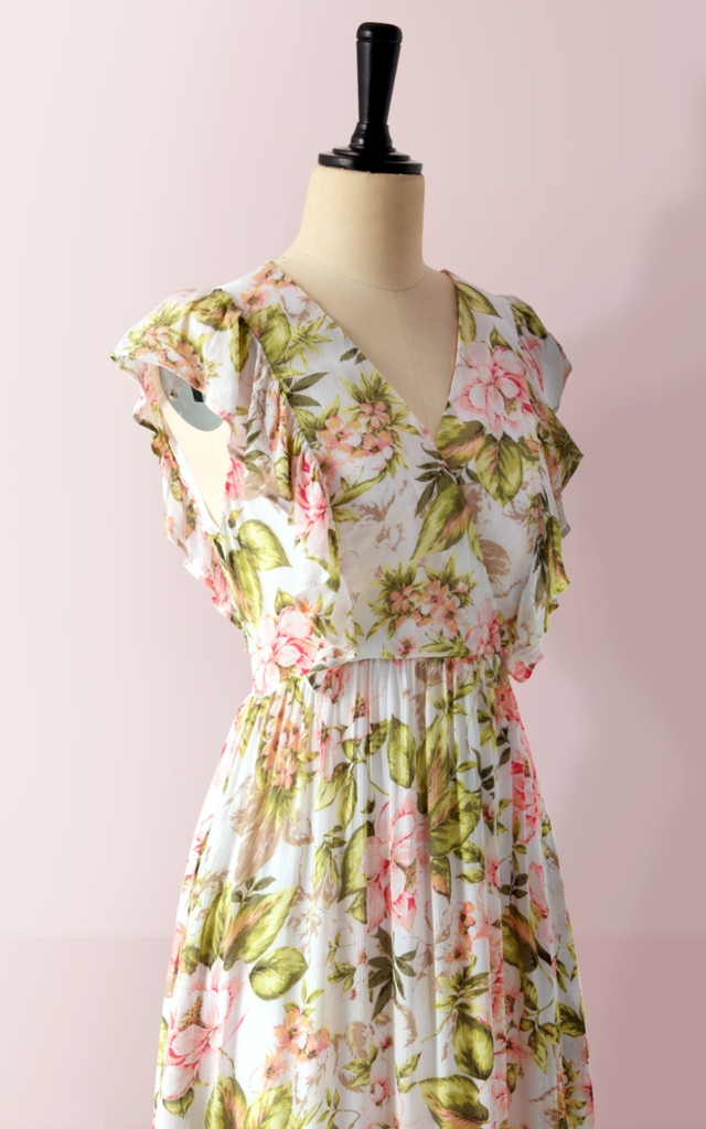 - Kiểu dáng: Đầm bèo, cổ tim sát nách
