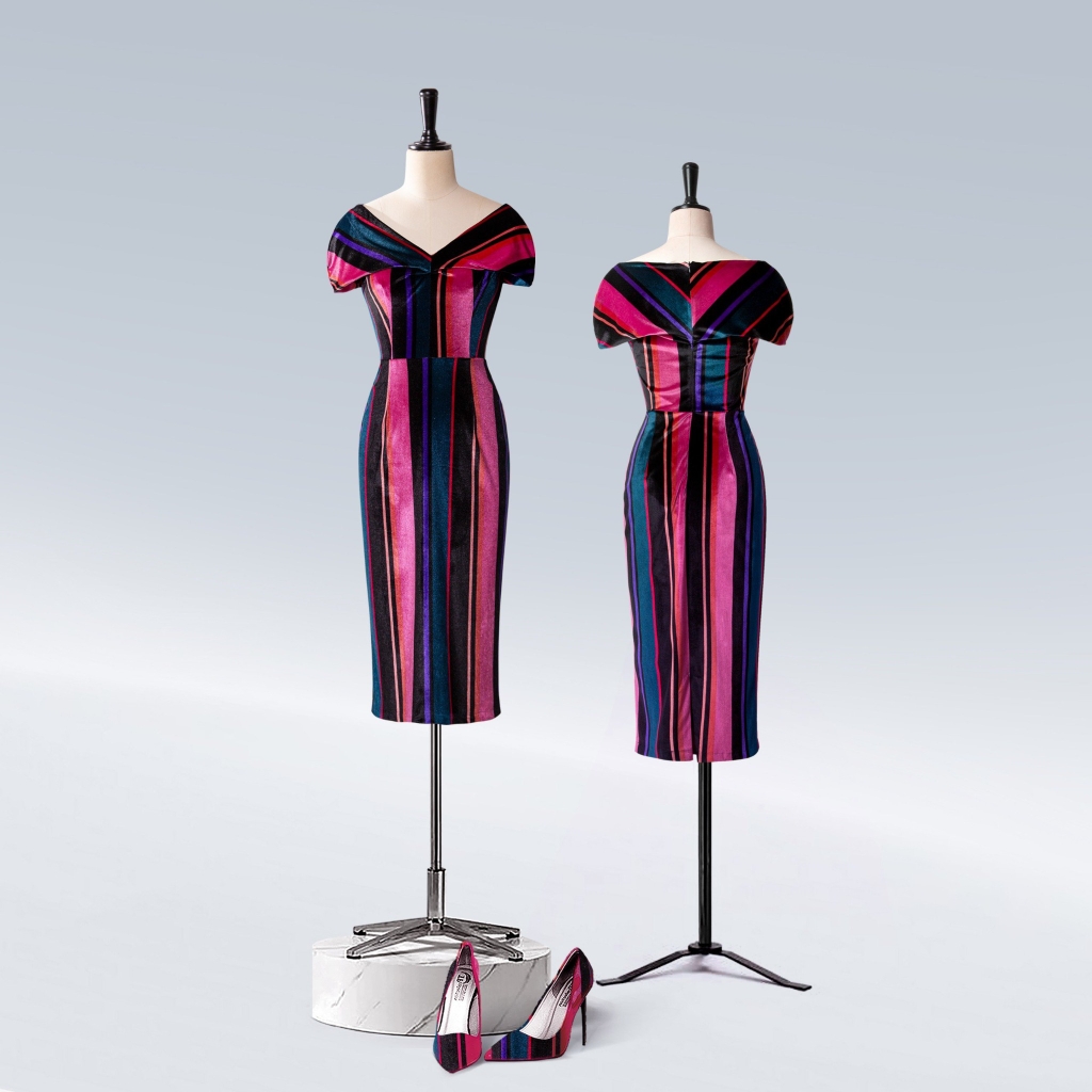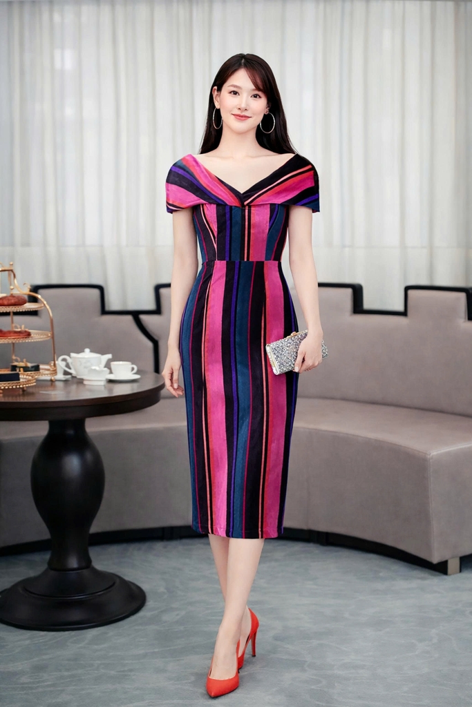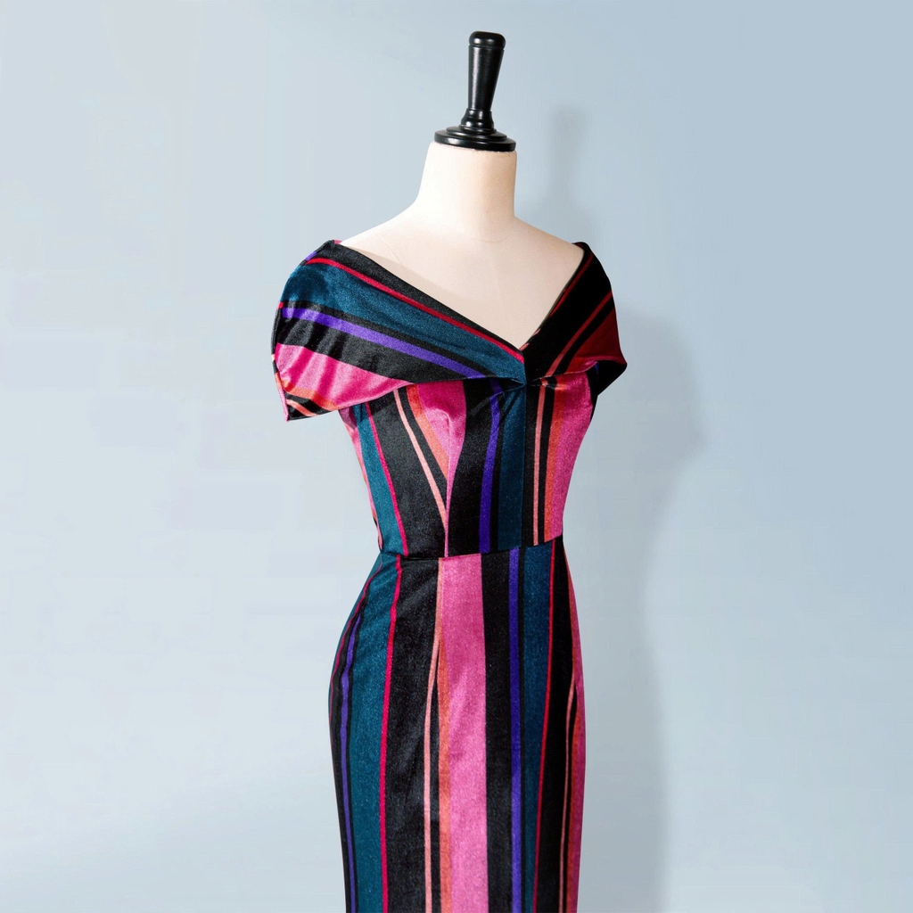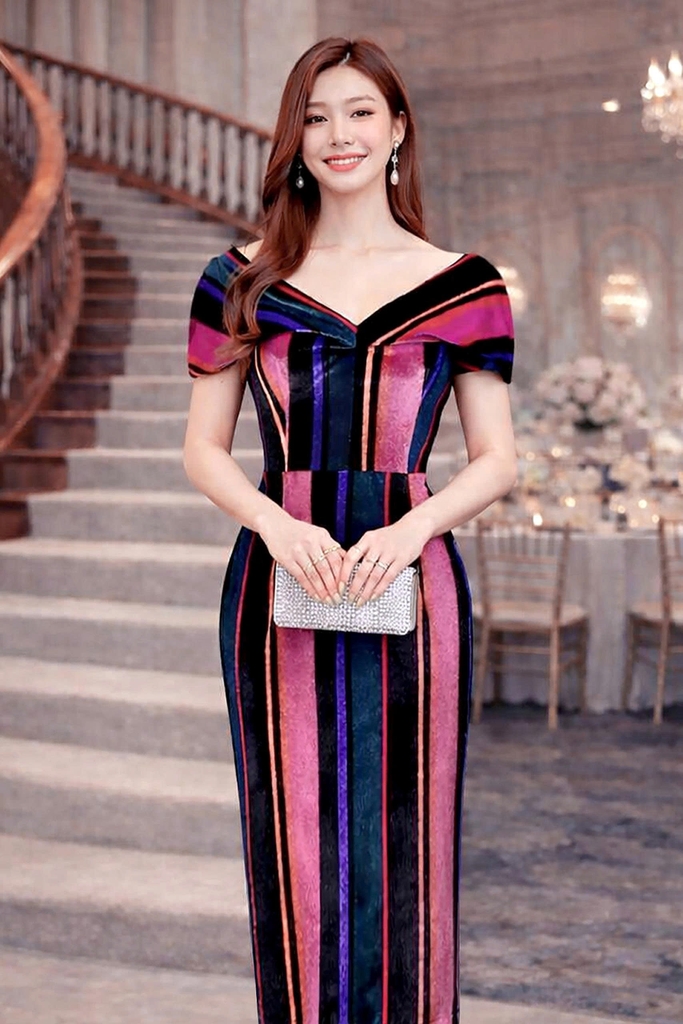- Kiểu dáng: đầm nhung trễ vai, dáng body