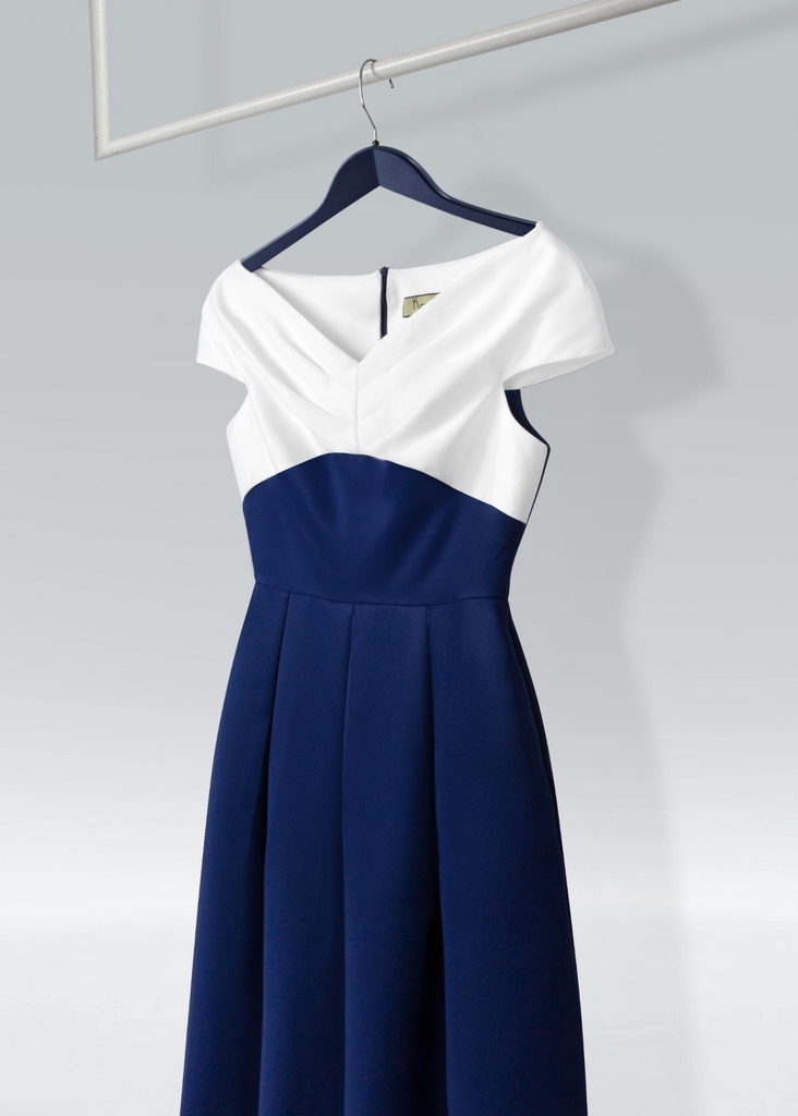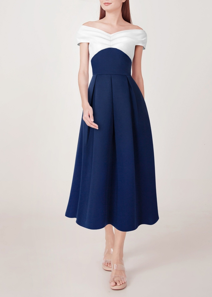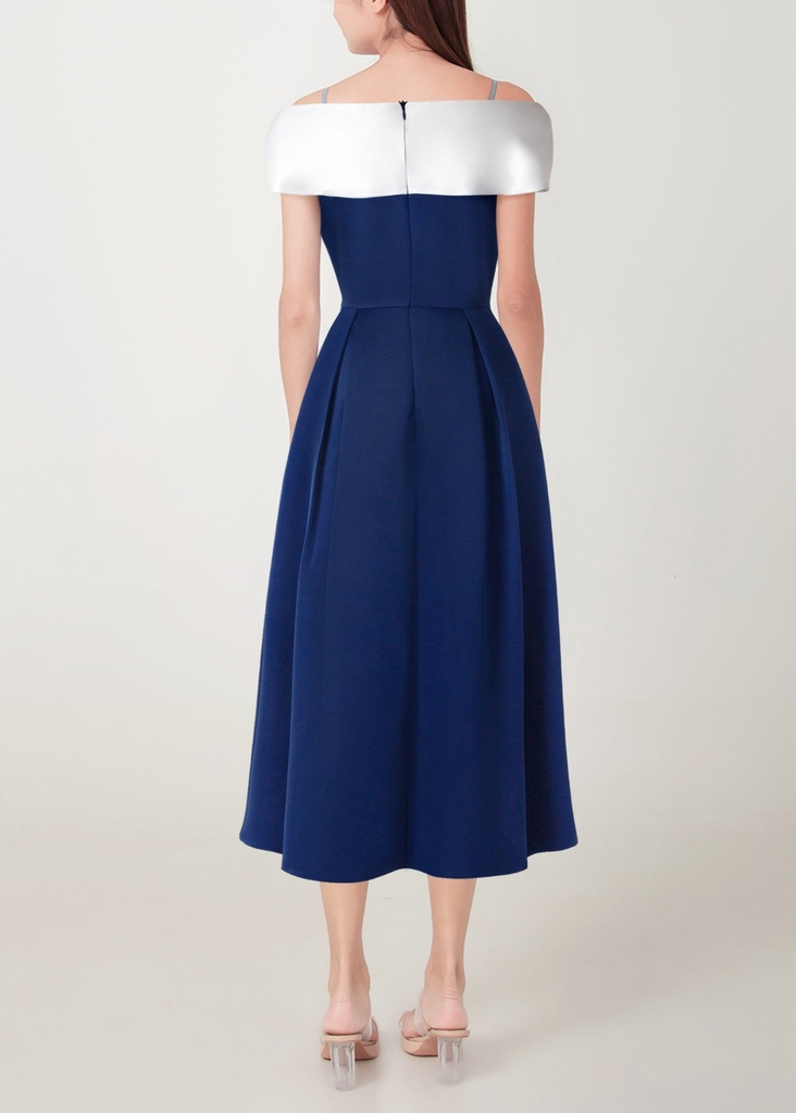 - Kiểu dáng: Điểm nhấn là đầm phối xếp ly trước ngực, tùng xòe
