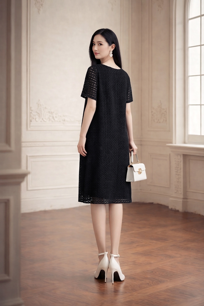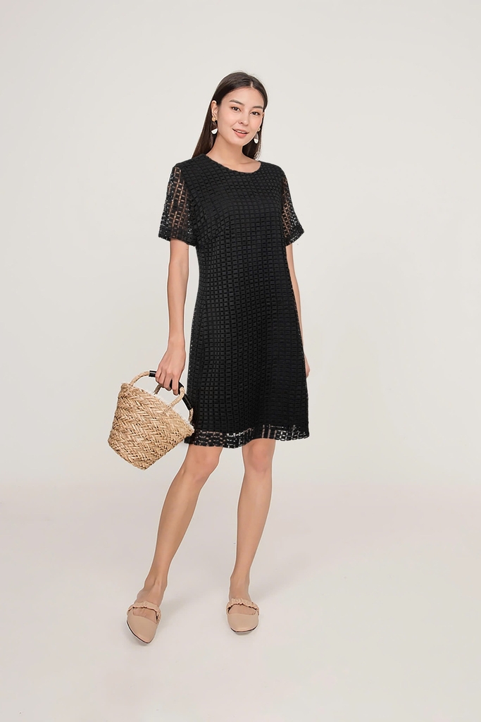 Đầm Katosa ren ô vuông đen-KTS32409243
