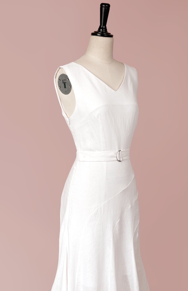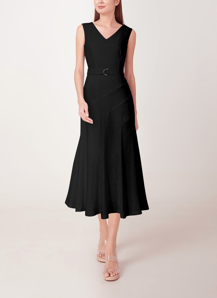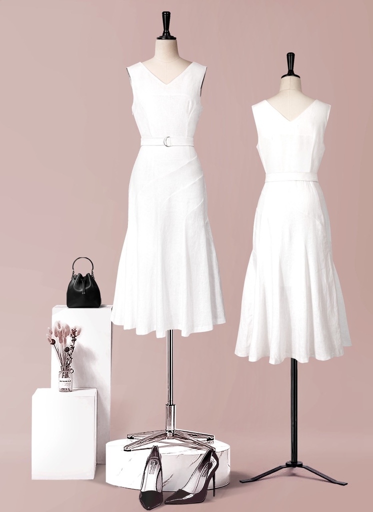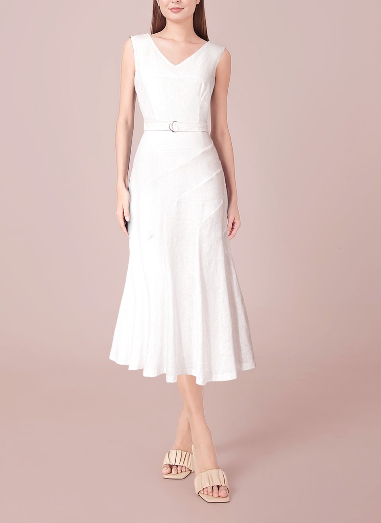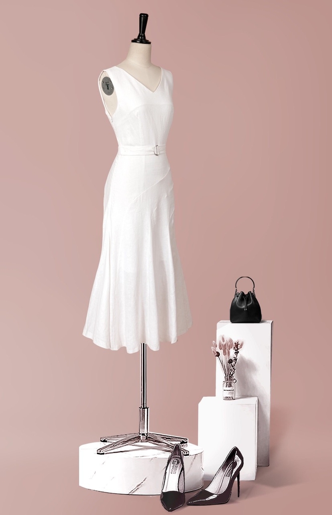 👉 Kiểu dáng: Đầm linen cổ tim sát nách, rã tà tùng làm điểm nhấn