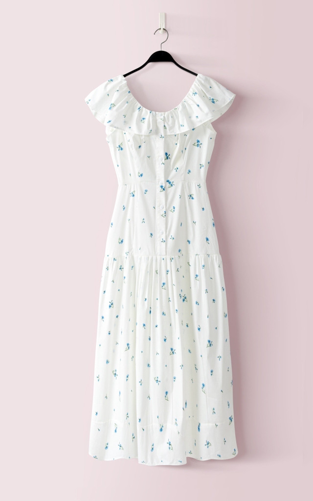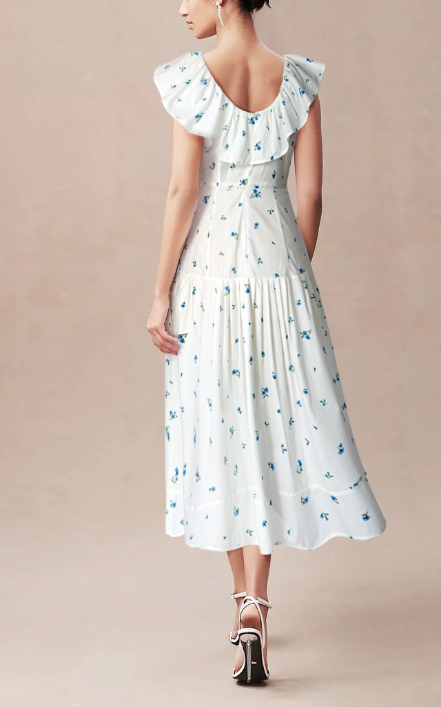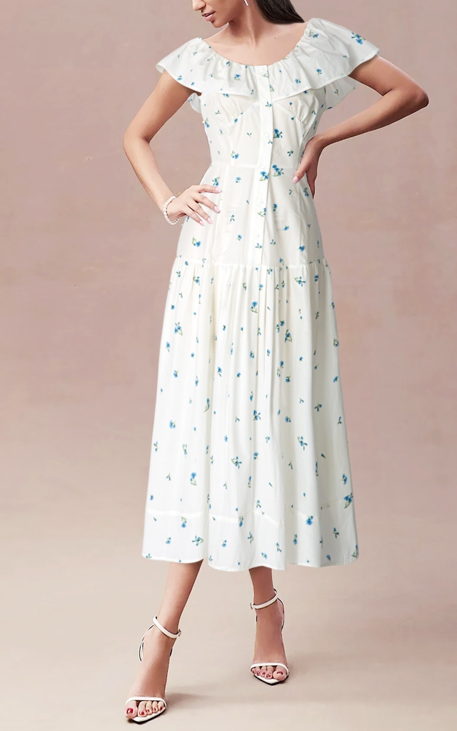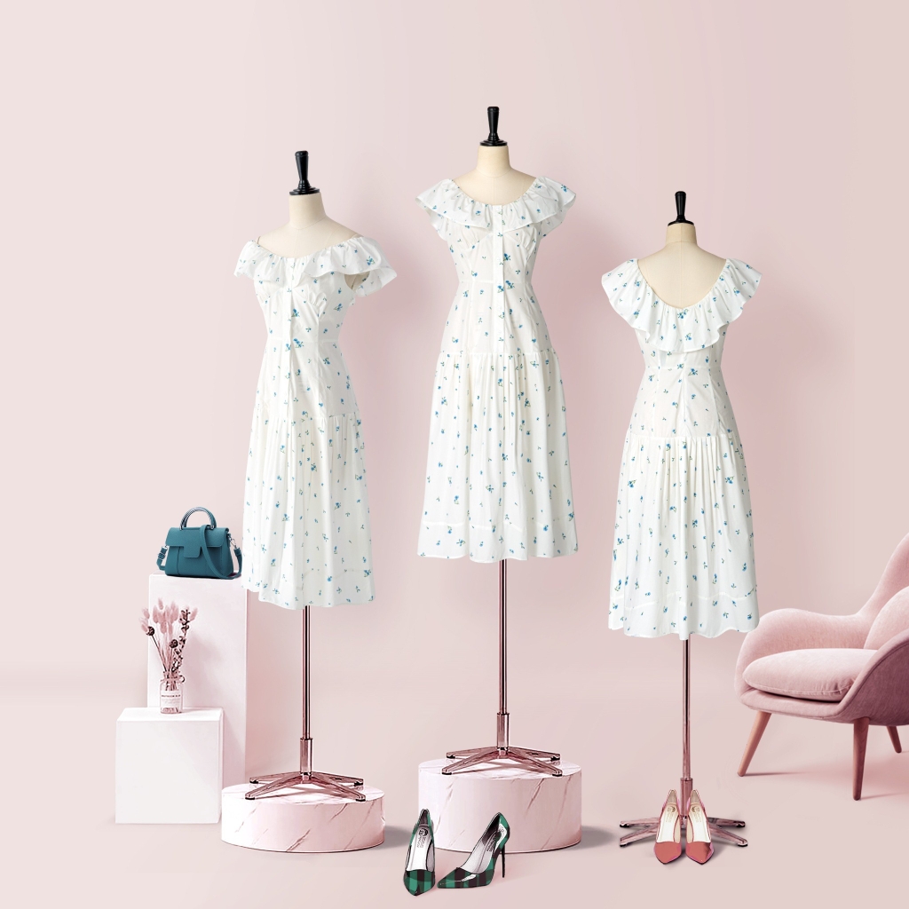 - Kiểu dáng: Đầm cổ tròn, nhún cổ, hoa nhí