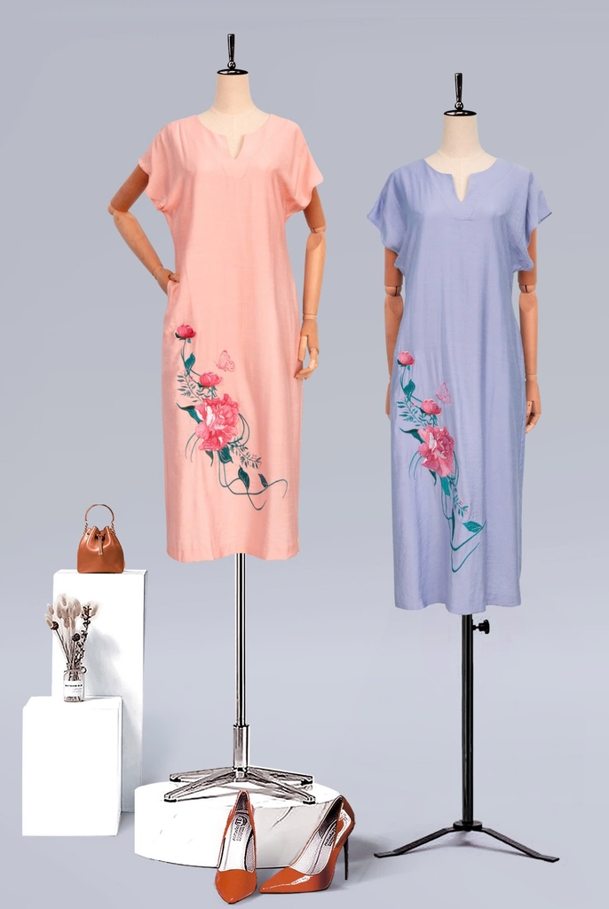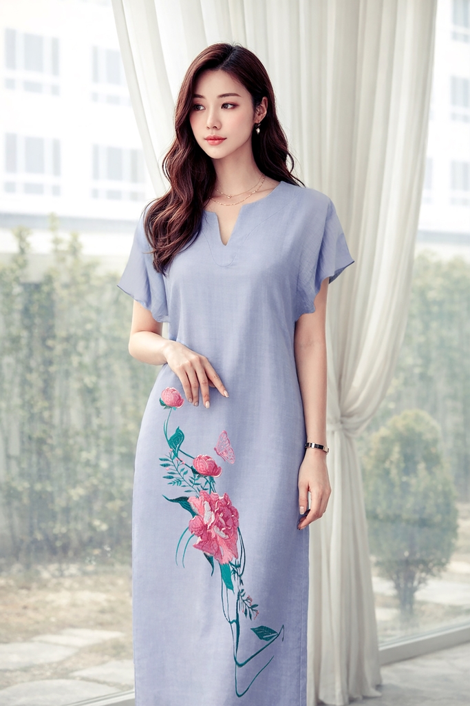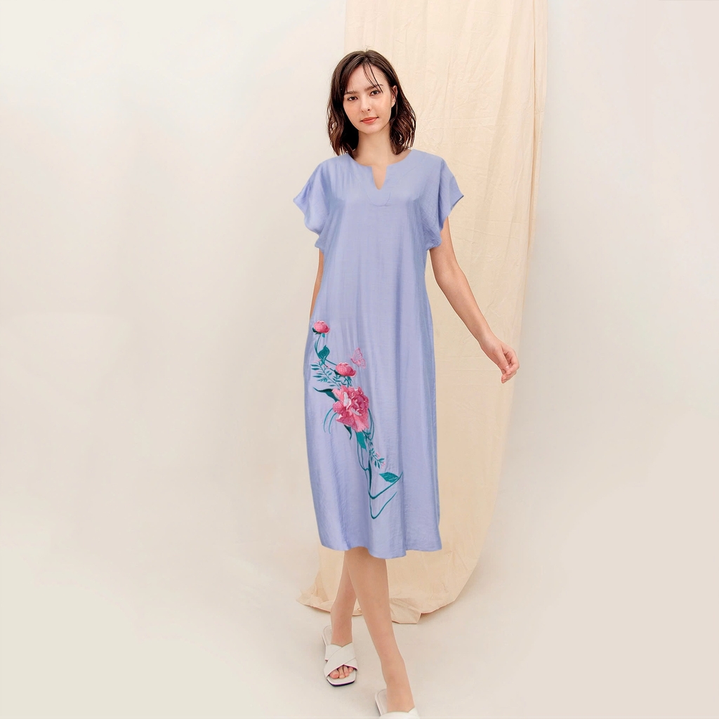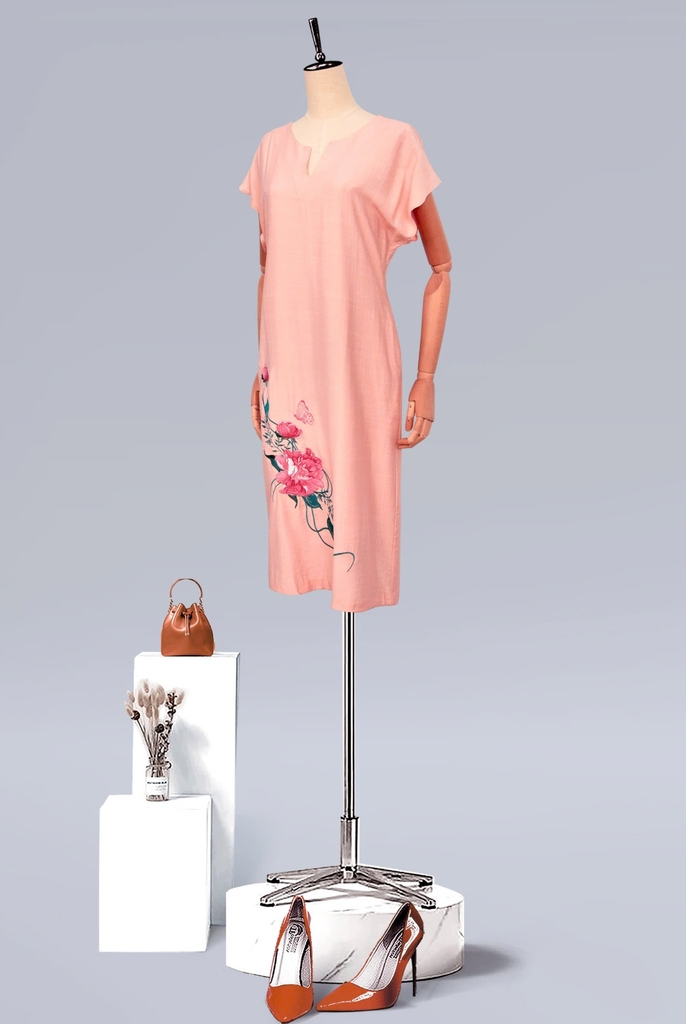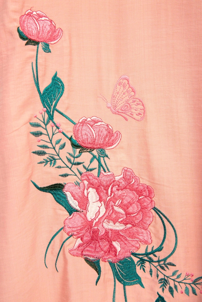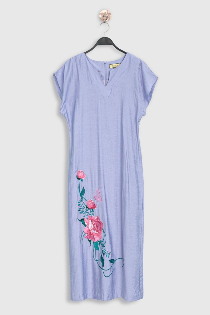 - Kiểu dáng: Đầm suông tay liền, thiết kế thêu hoa mẫu đơn