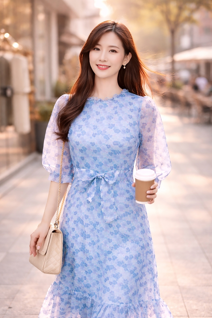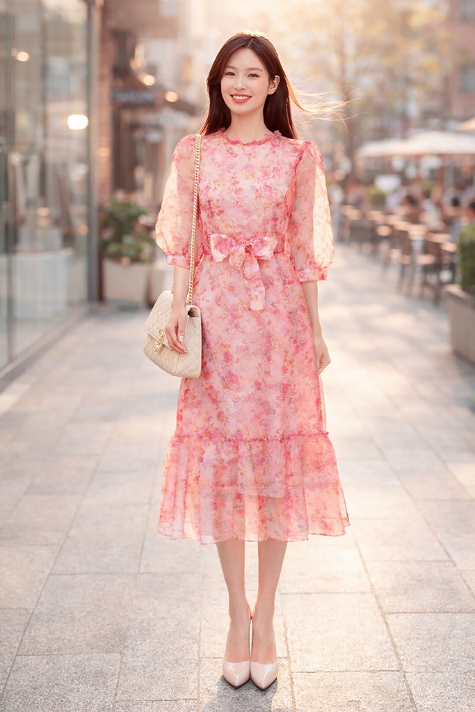 👉 Kiểu dáng: Đầm tơ tay lỡ, kết hợp belt dây cột eo, nhúng bèo.