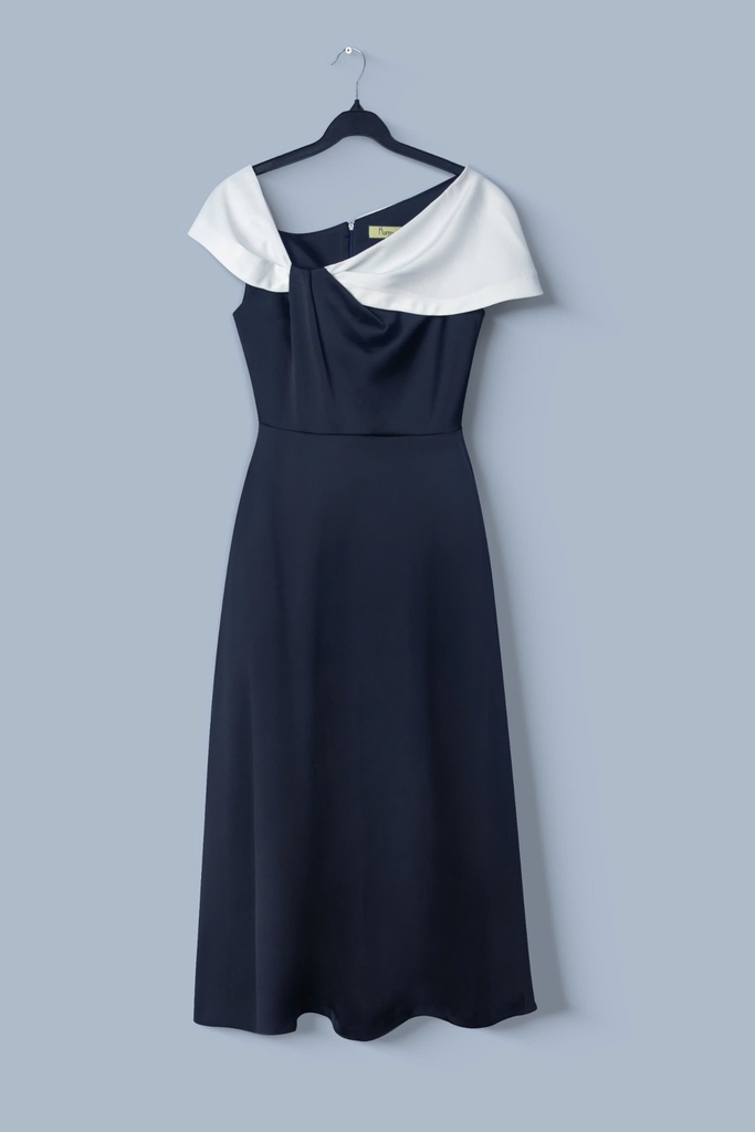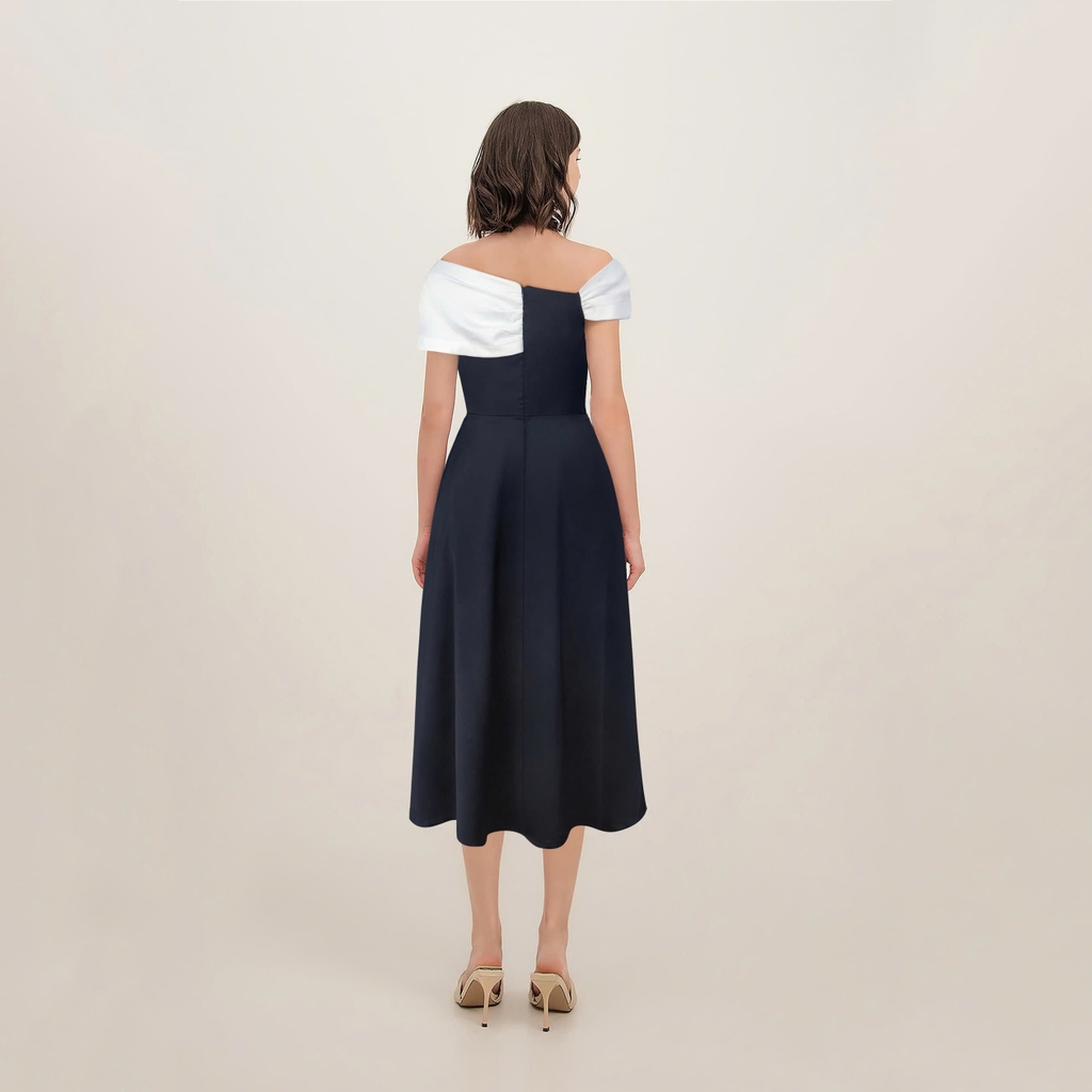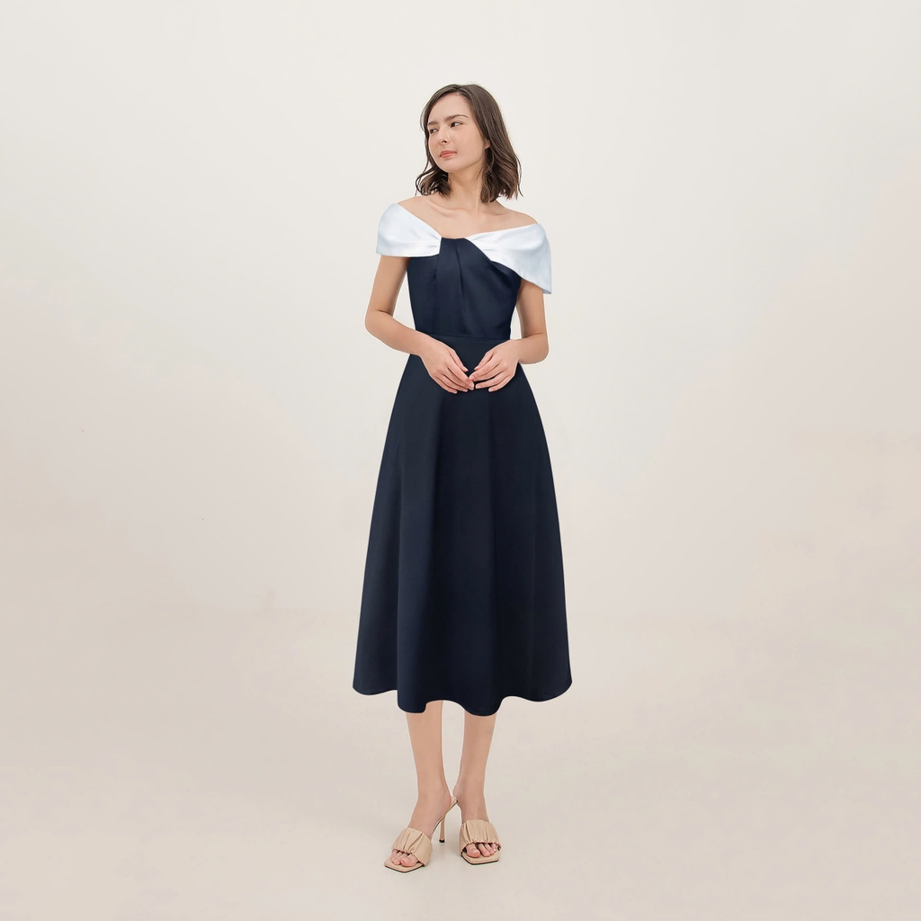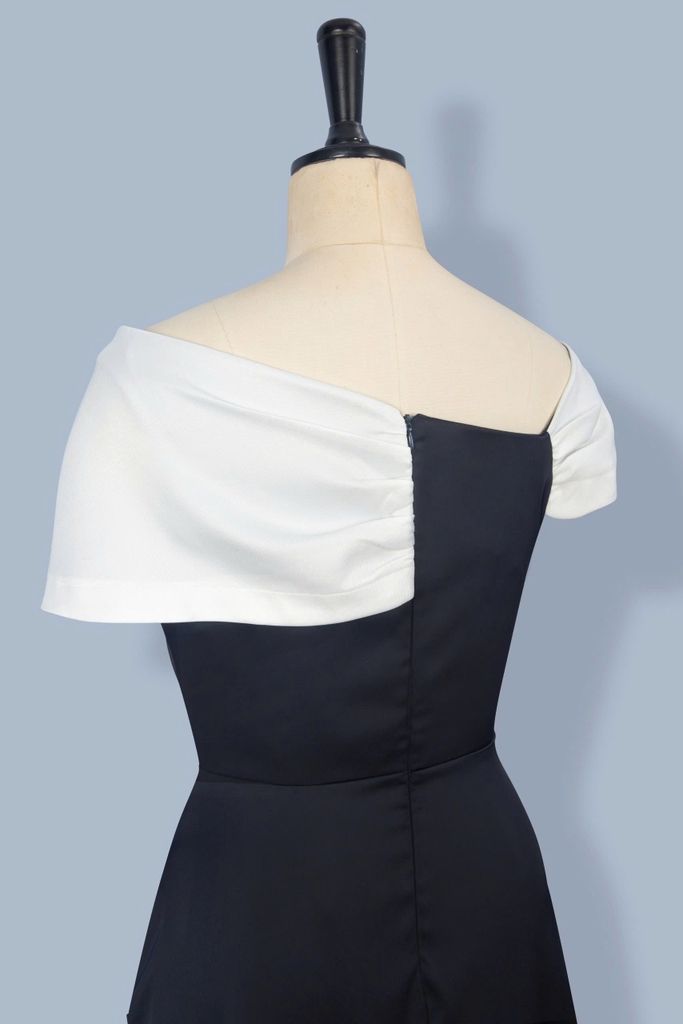 - Kiểu dáng: Đầm dáng xoè, xếp ly trễ vai