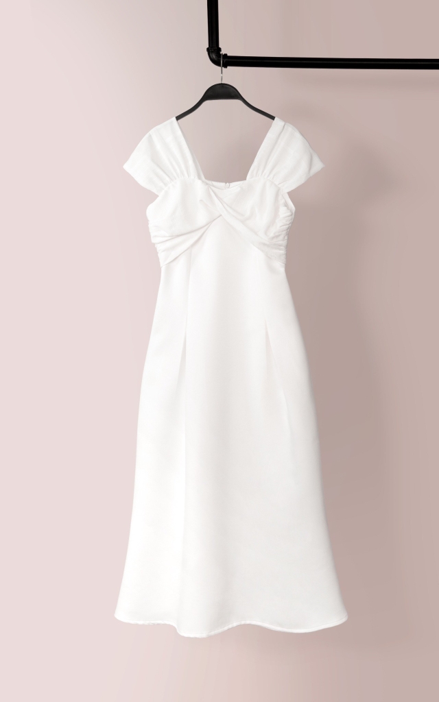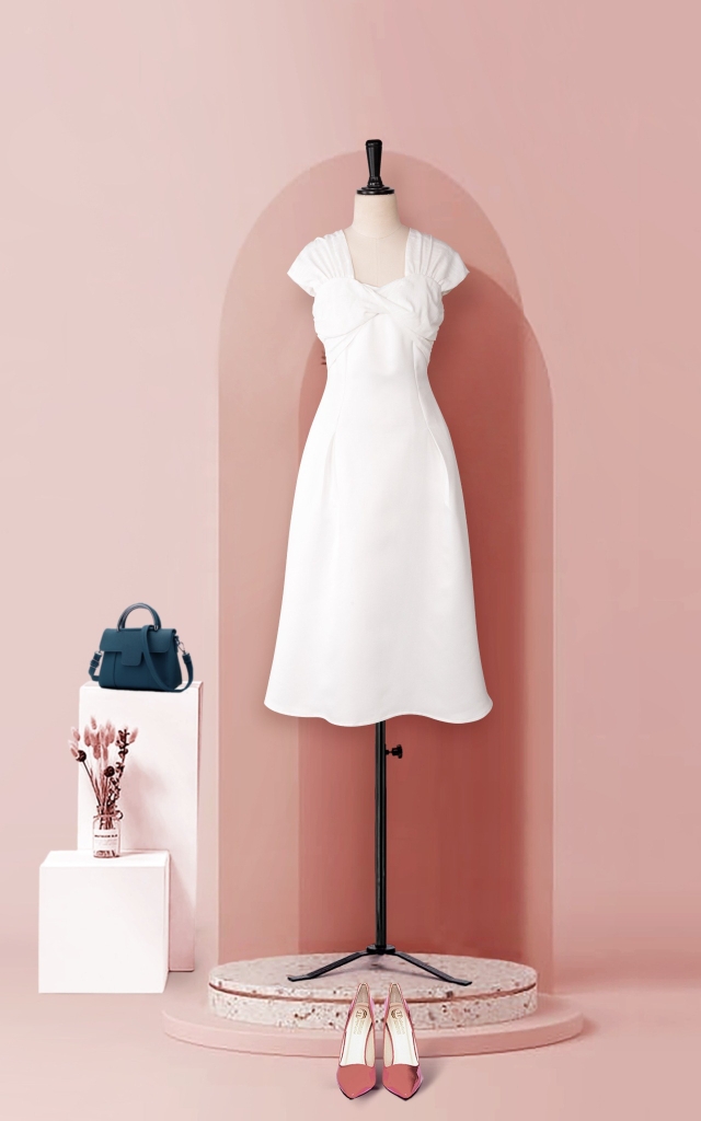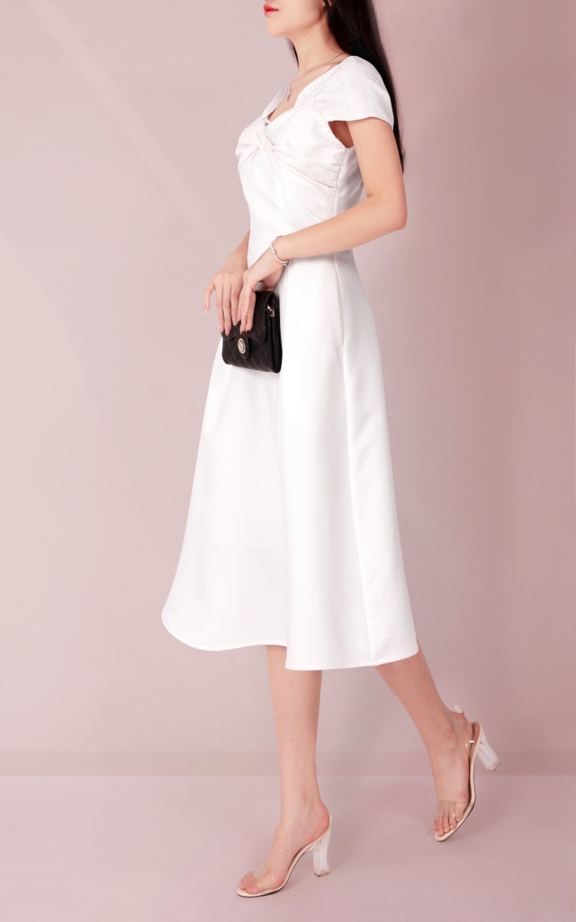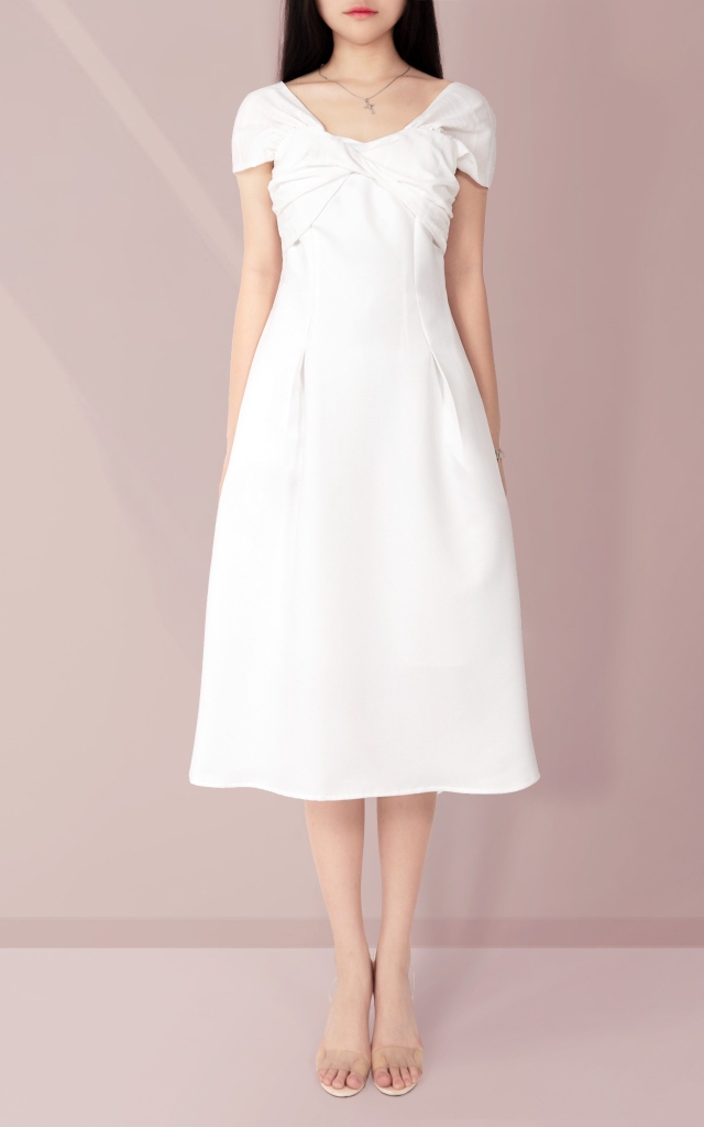 - Kiểu dáng: Đầm trắng tay chồm, phối ren trắng, tùng đầm xòe