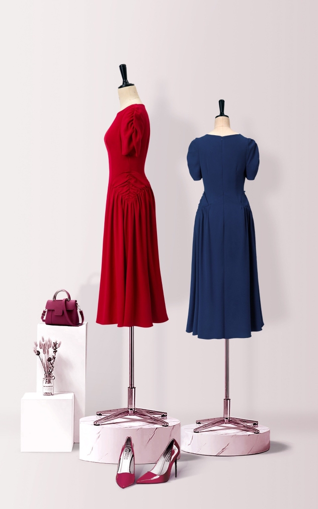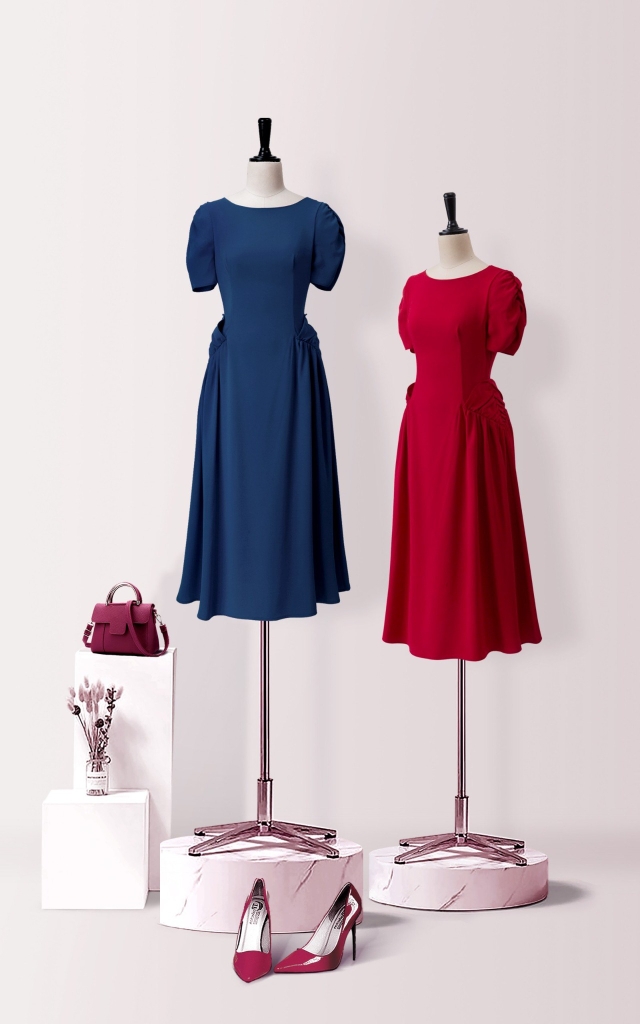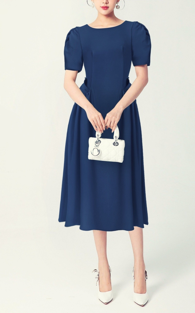 - Kiểu dáng: Đầm Dáng xòe nhún eo, tay ngắn
