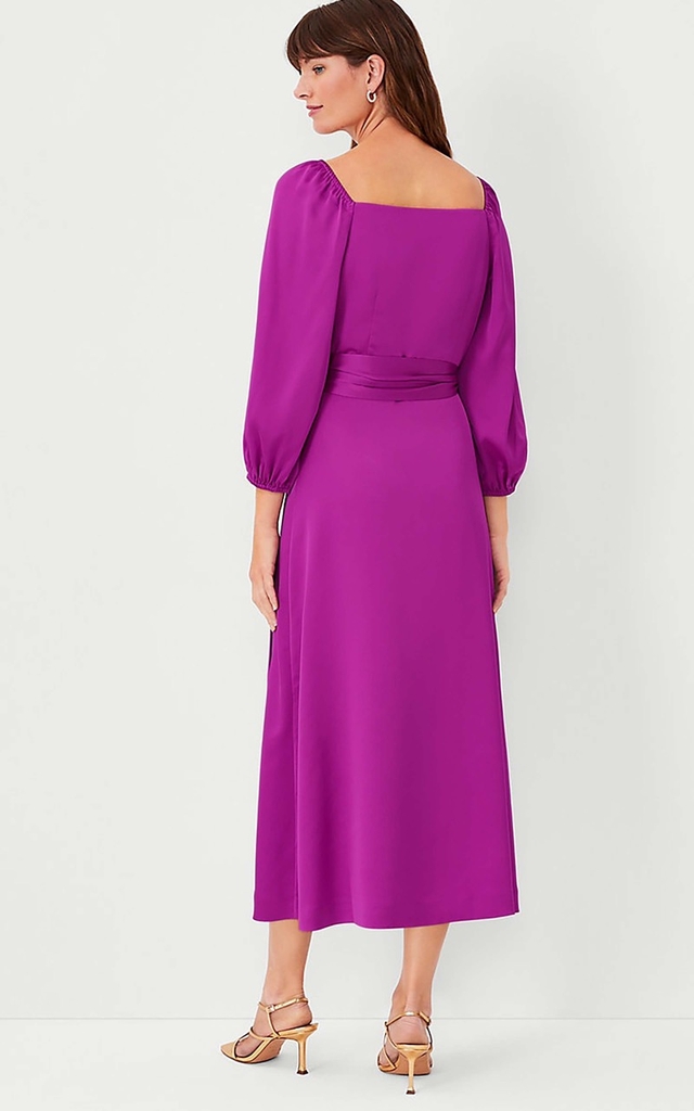 - Kiểu dáng: Đầm cổ tim, xẻ tà trước, có dây cột eo