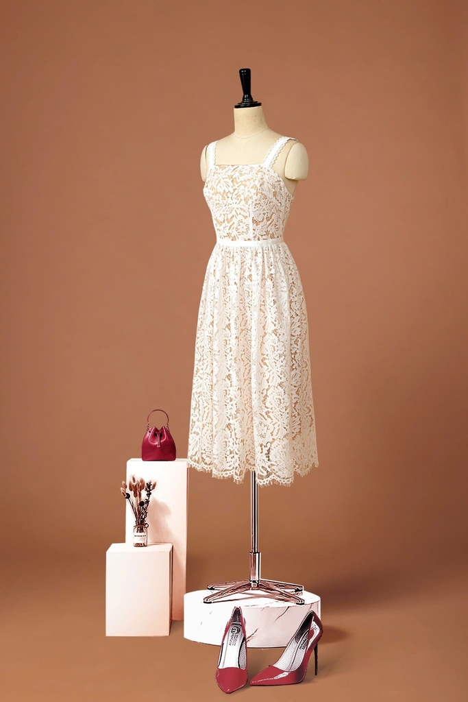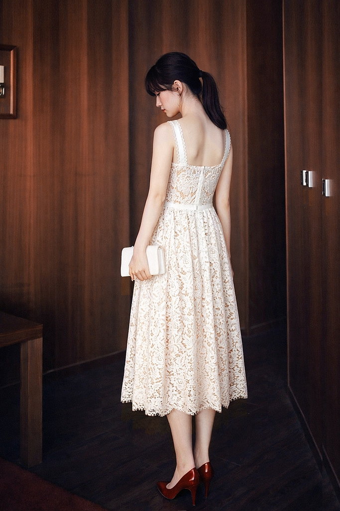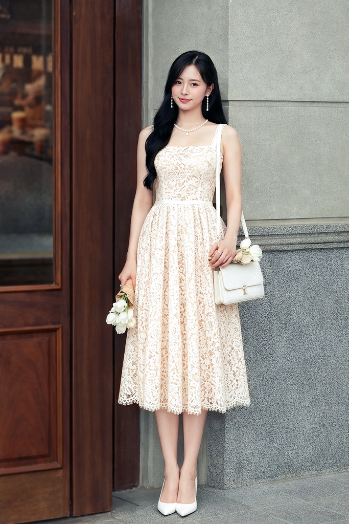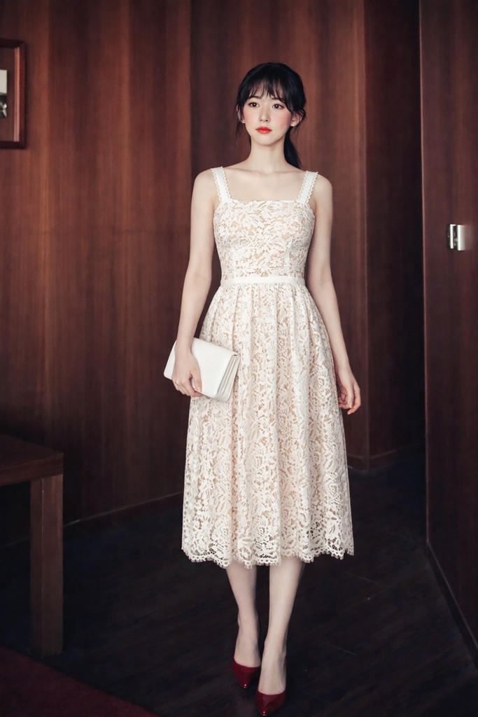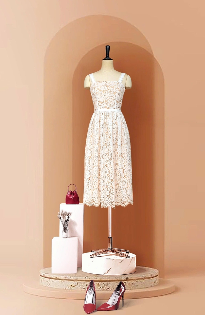 - Kiểu dáng: Đầm ren 2 dây, tùng xòe