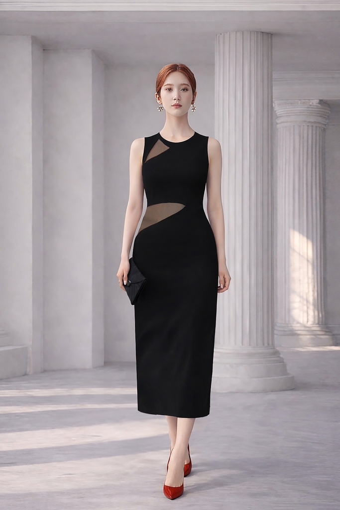 Miêu tả: Thiết kế ôm sát tôn lên đường cong cơ thể. Đơn giản nhưng đầy tinh tế với từng đường phối lưới sang trọng.