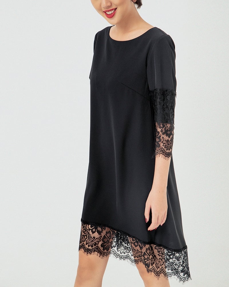 ĐẦM FORM SUÔNG CỔ TRÒN TAY LỞ PHỐI REN - U2111131218
