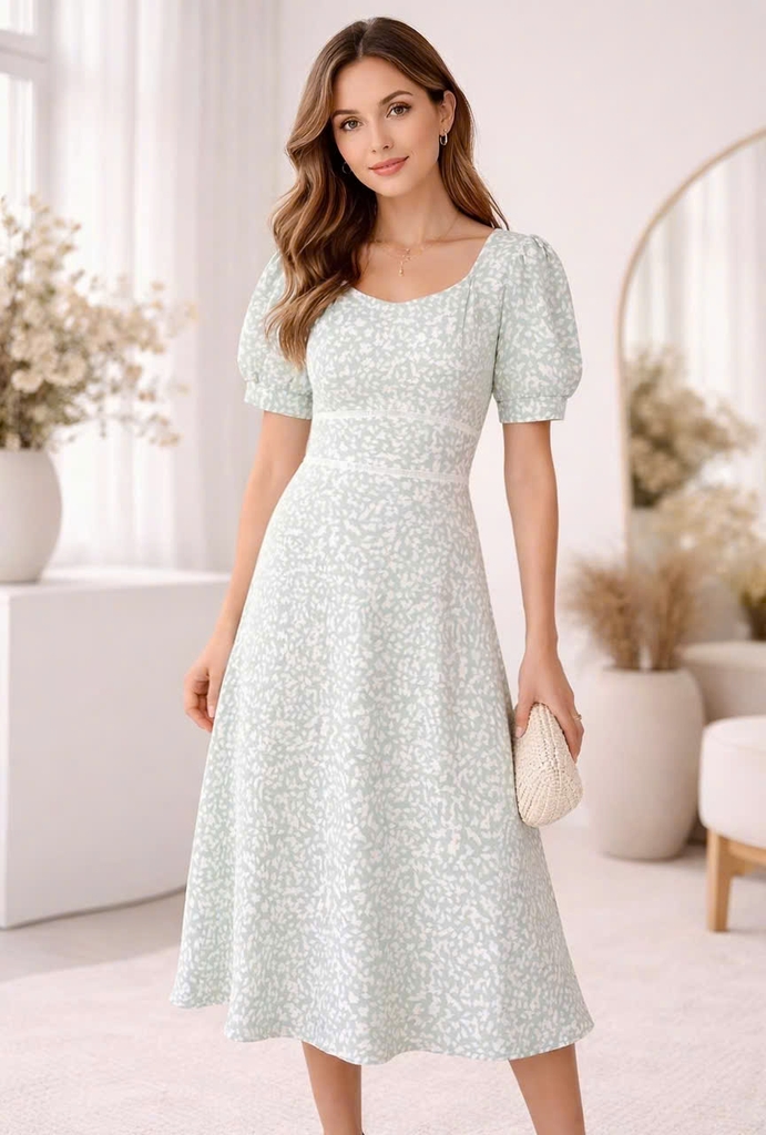 Đầm Midi Phối Họa Tiết-TPSRMD250326