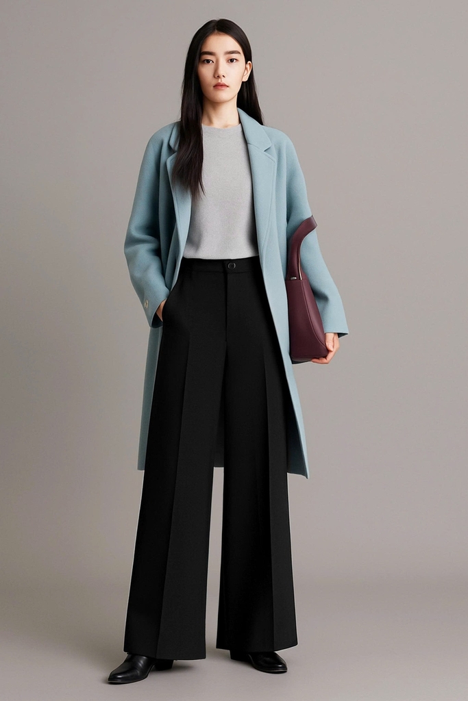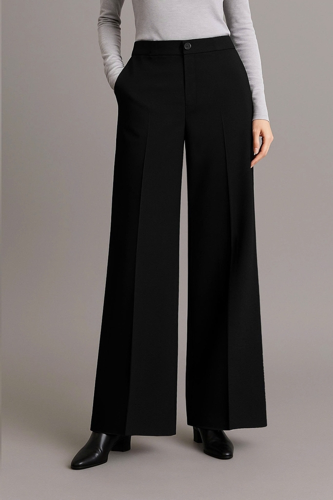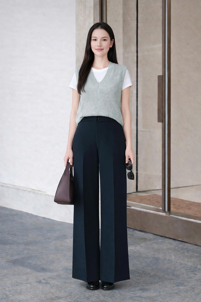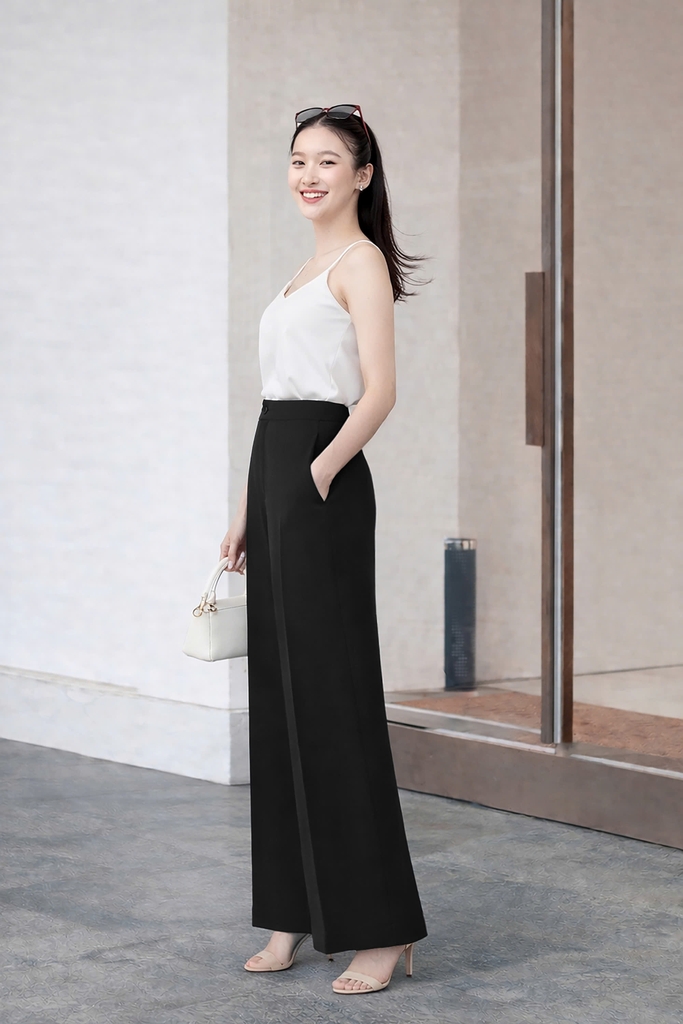 - Kiểu dáng: quần cạp cao, ống rộng