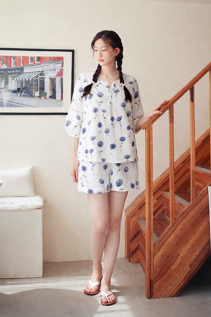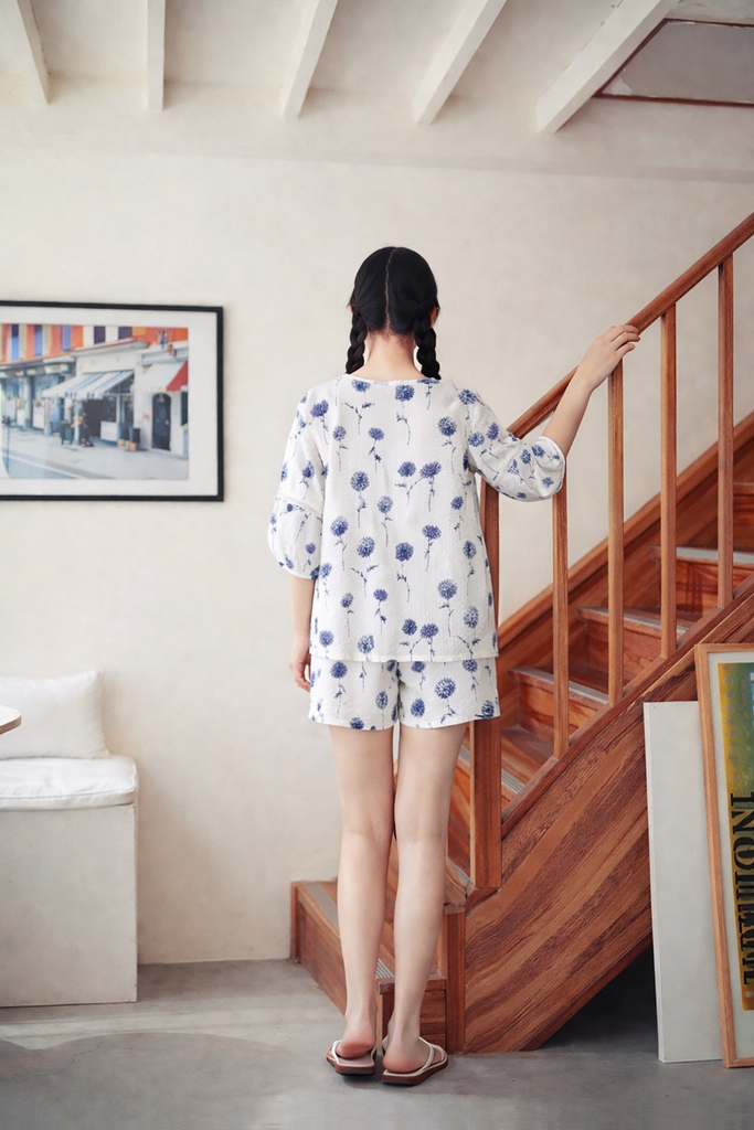 - Kiểu Dáng: Áo phom rộng, cổ v, tay lỡ, quần short cạp lưng chun