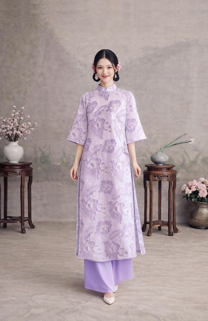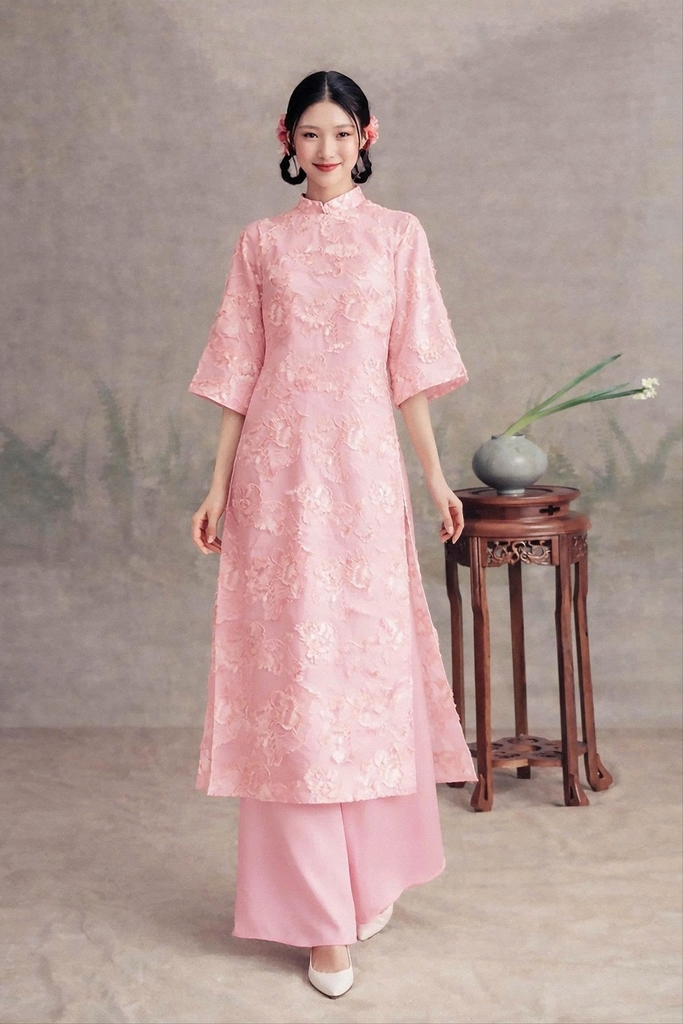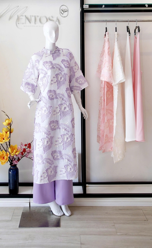 Set Áo Dài Gấm Nổi 3D Mentosa 3 Màu-MTS303122401L2