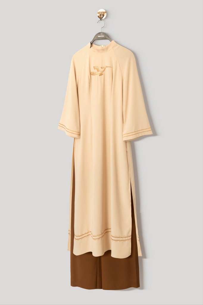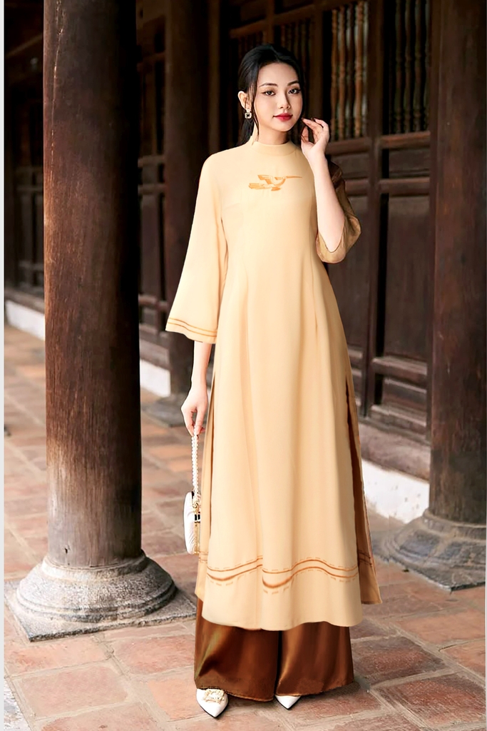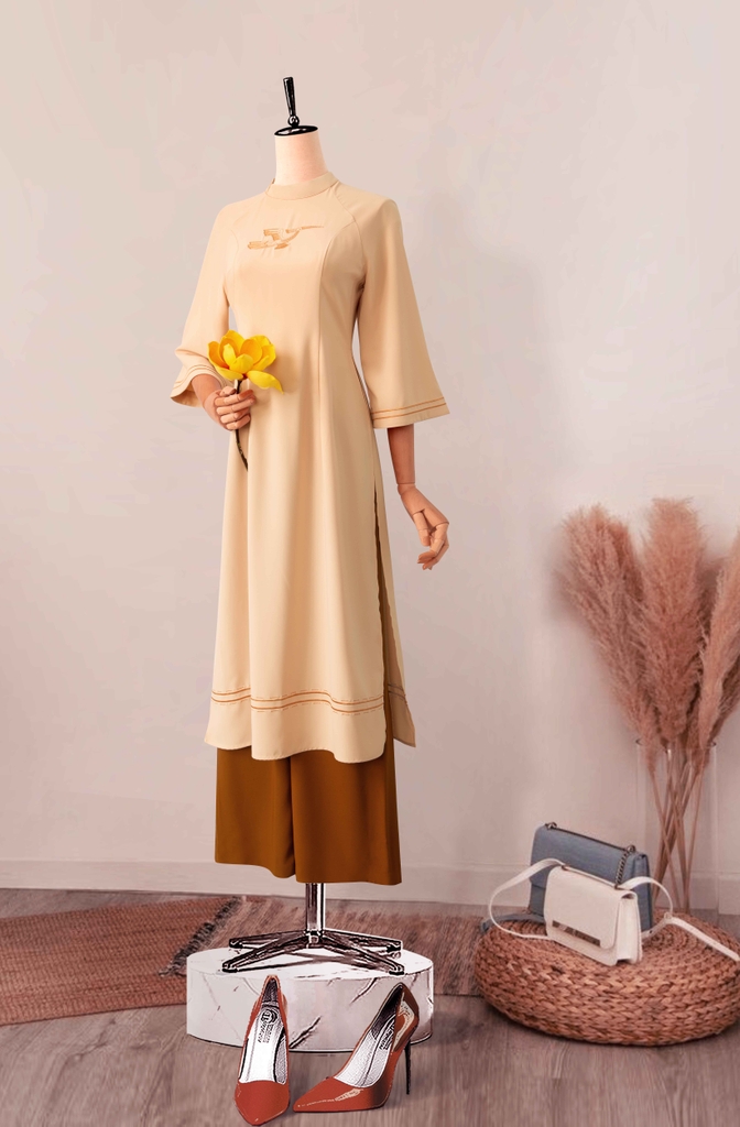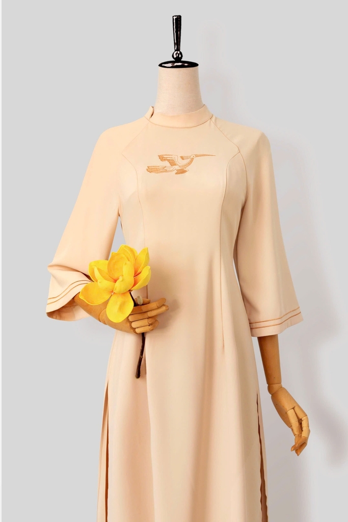 - Kiểu dáng: Set áo dài lam cổ kính hiện đại, họa tiết chim hạc được thiết kế thêu tỉ mỉ