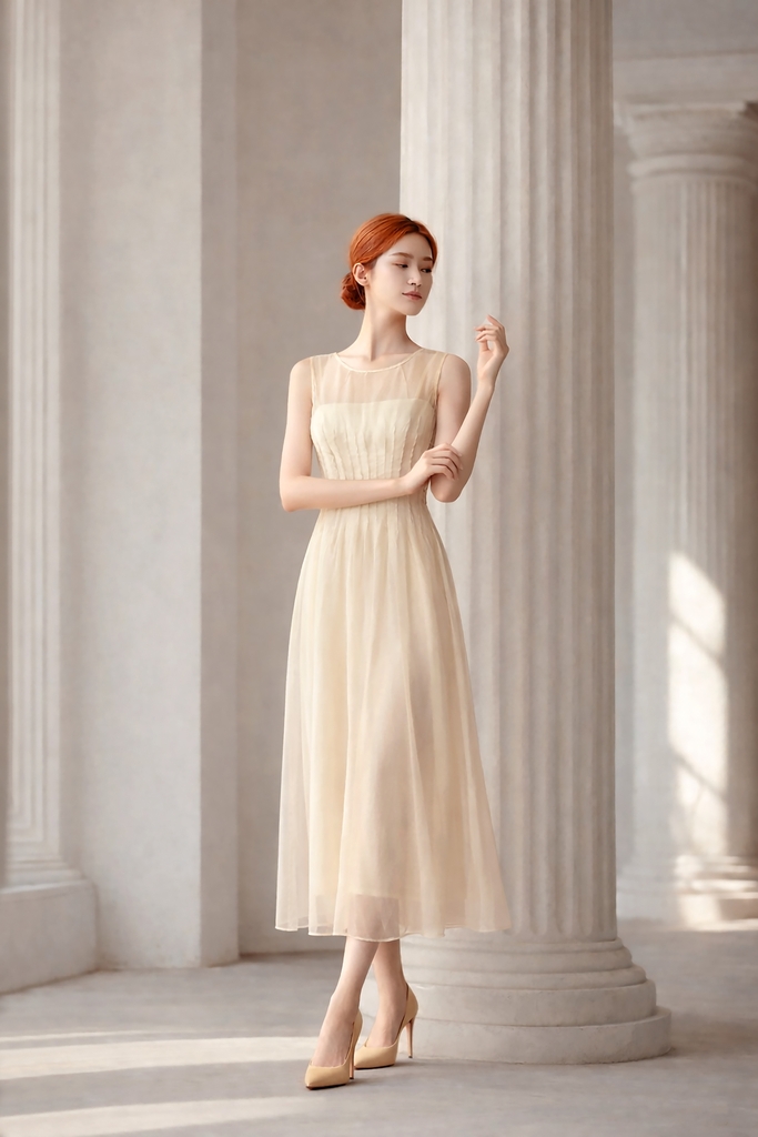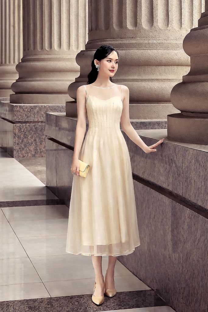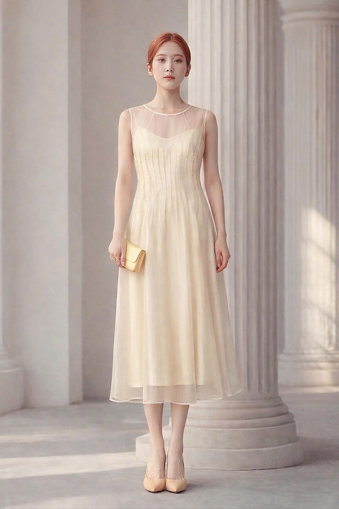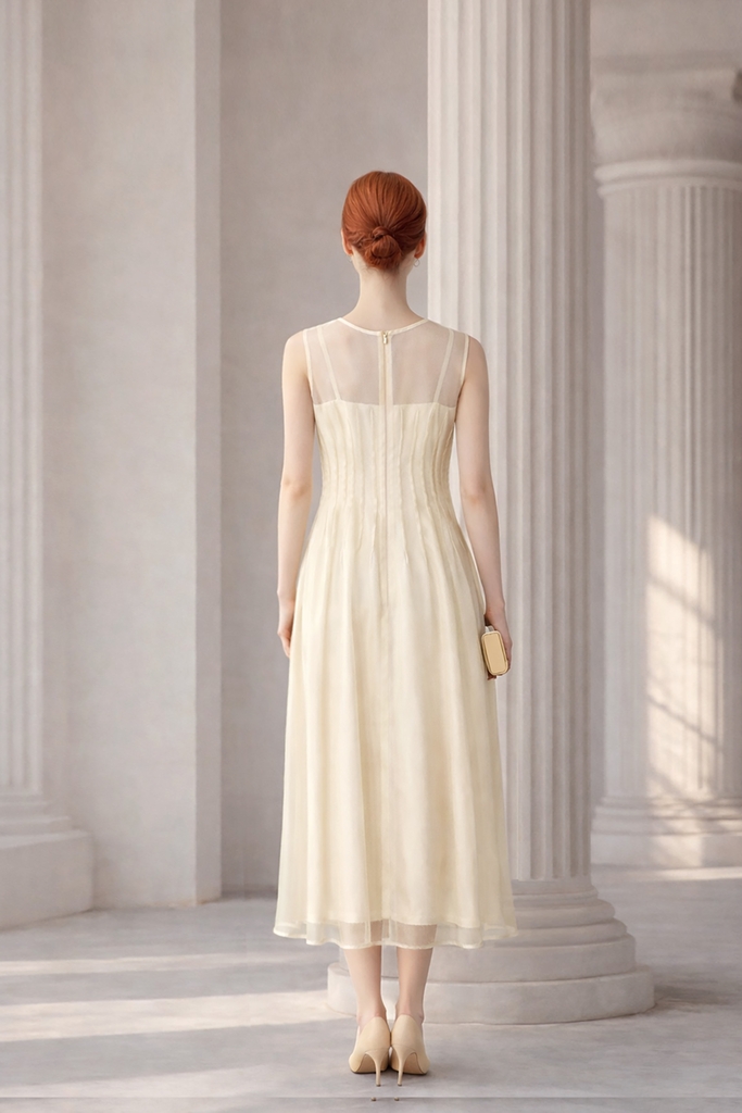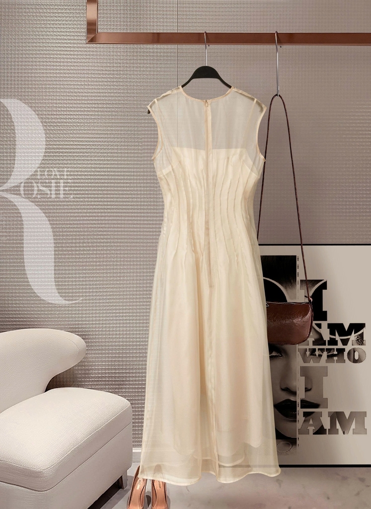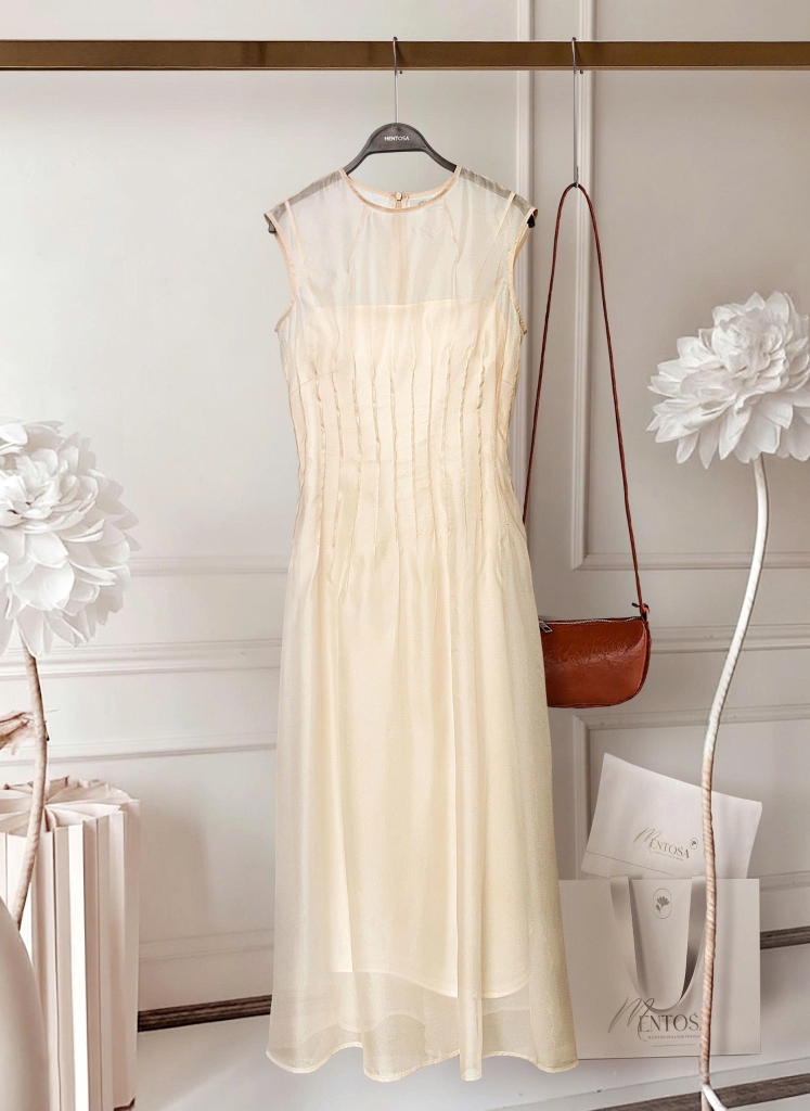 Set Đầm Tơ Xếp Ly Mentosa-DMTS241025L1