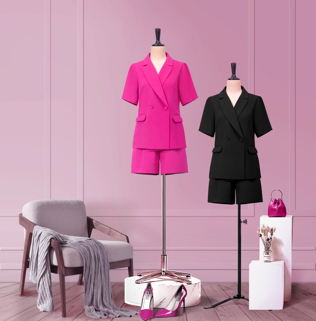 - Kiểu dáng: áo blazer tay ngắn, quần đùi