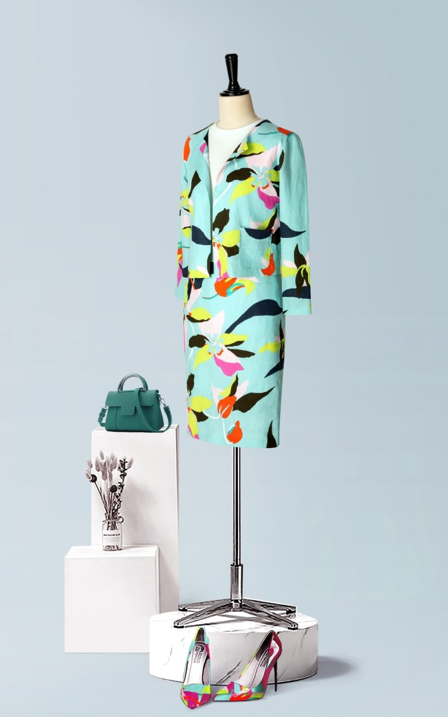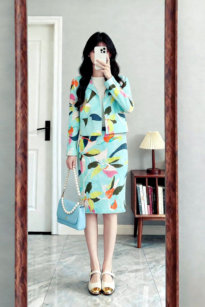 Size L : ngang ngực áo khoác 94 , dài áo 51 , vai 12 - váy eo 78 , dài váy 60