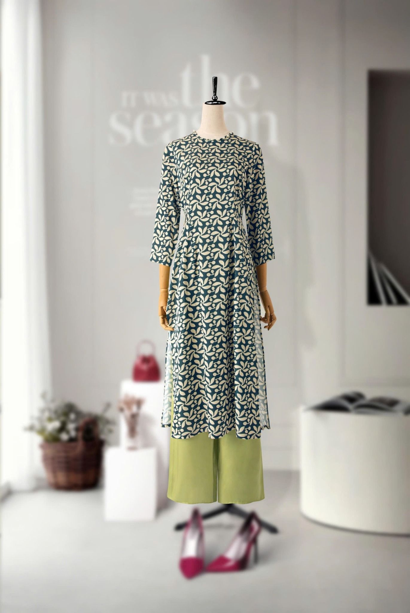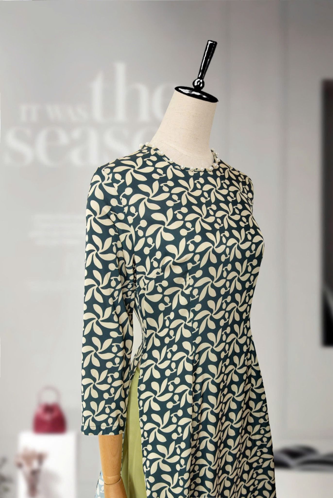 - Kiểu dáng: áo dài cách tân đính ngọc trai thủ công
