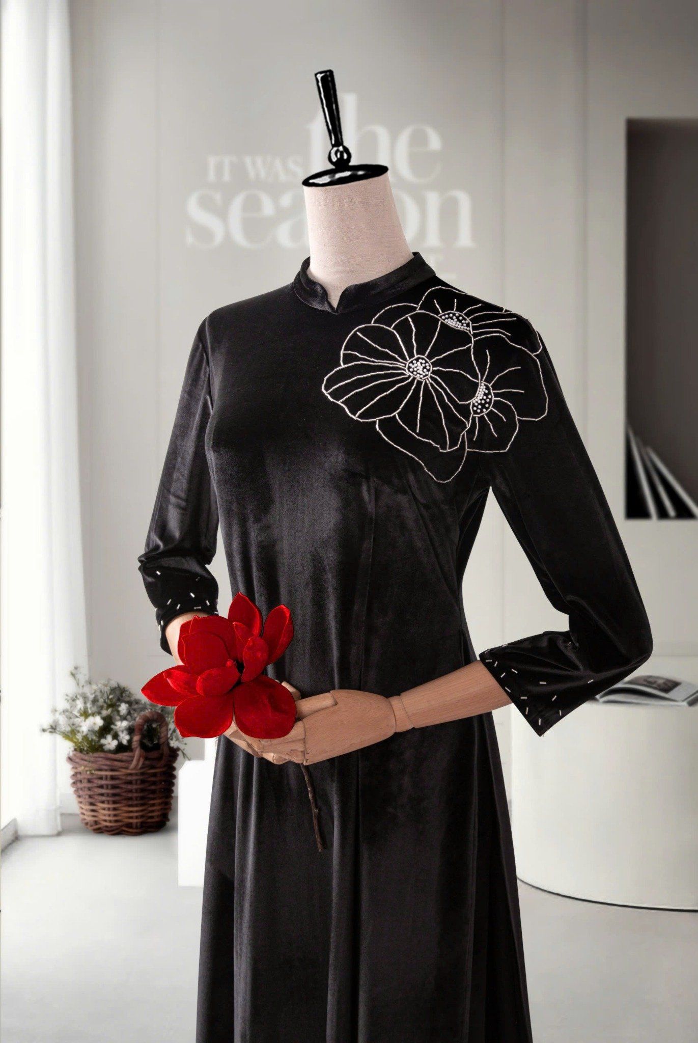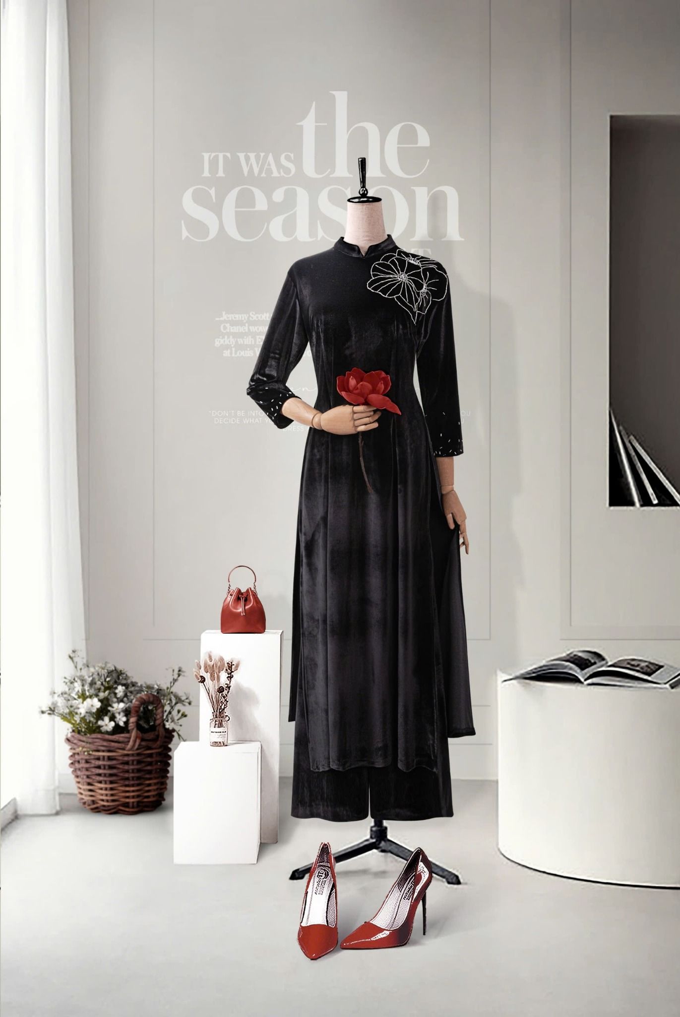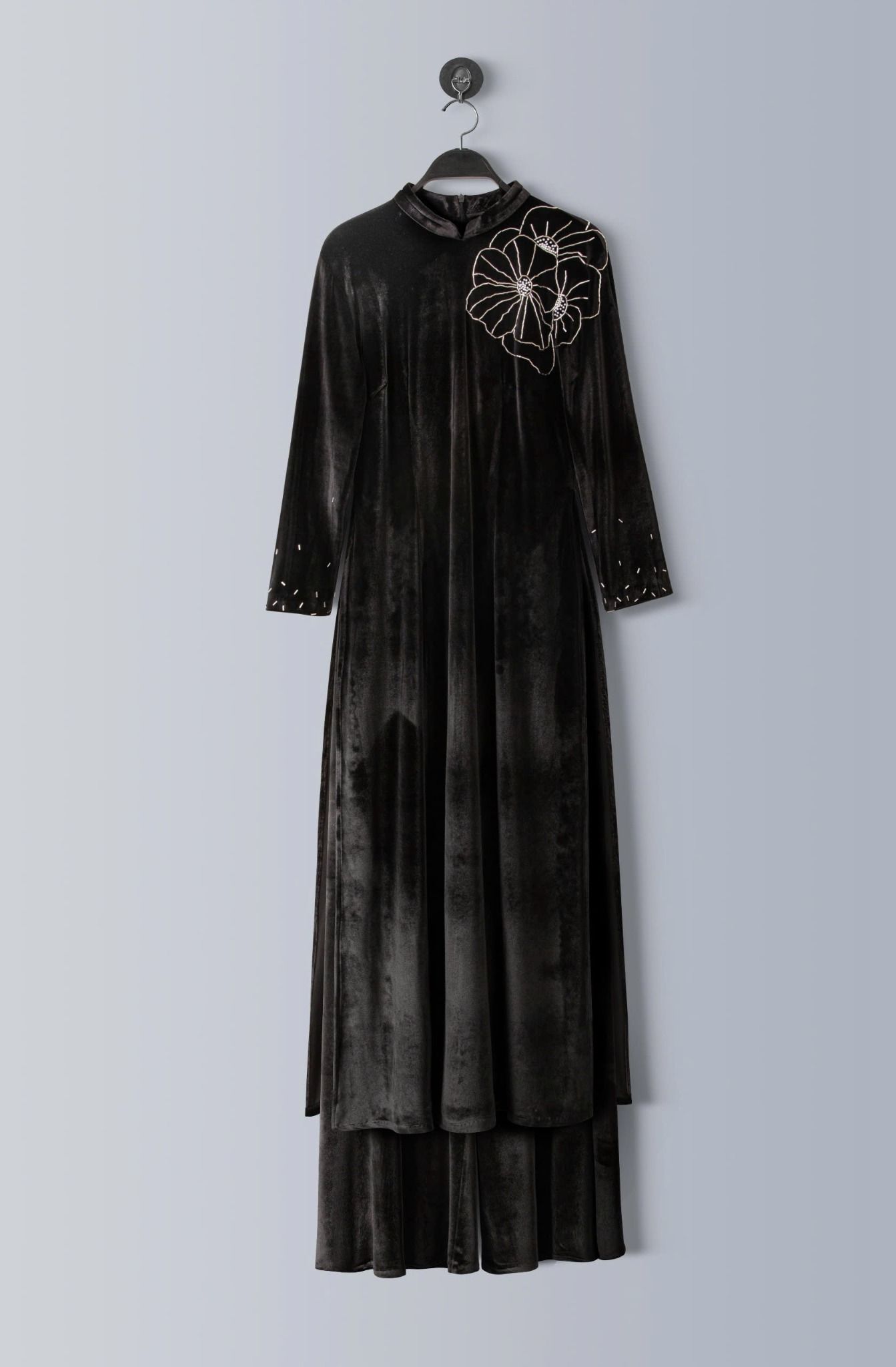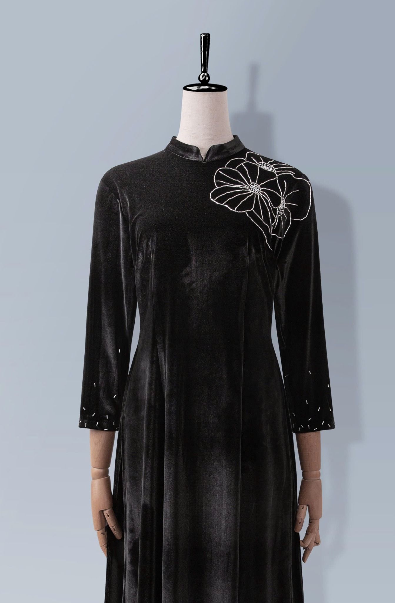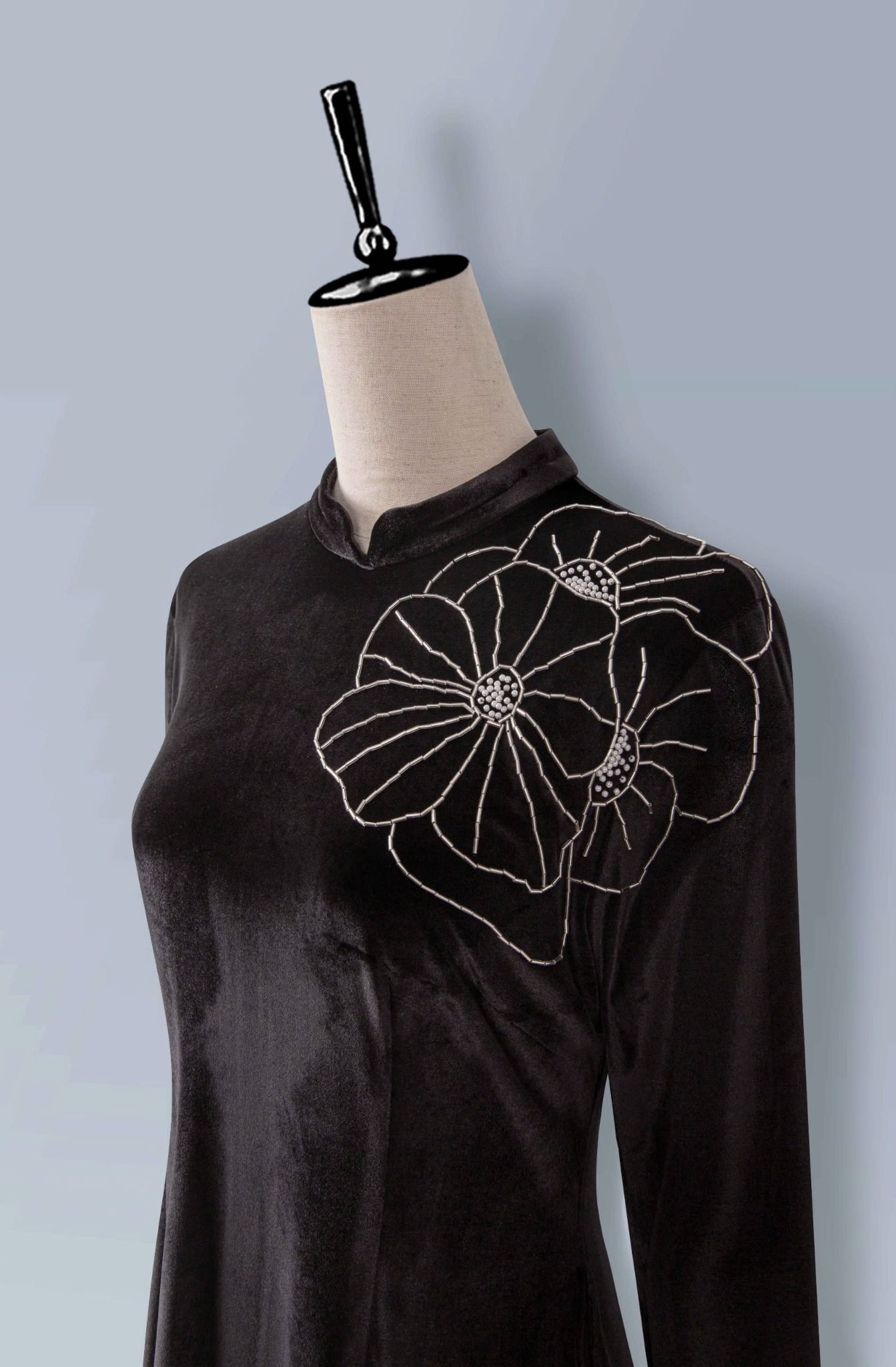 - Màu sắc: bộ áo dài nhung xanh, bộ áo dài nhung đen