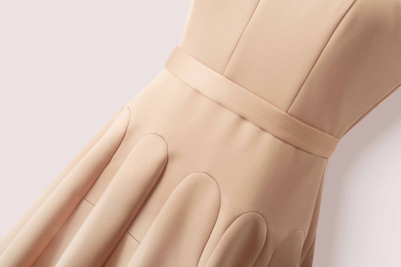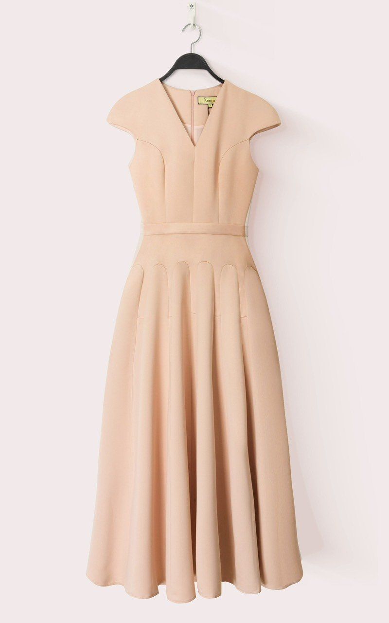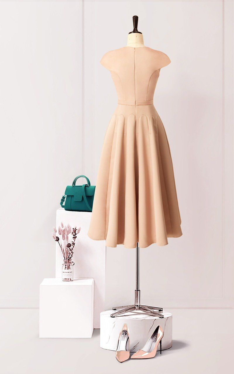 - Kiểu dáng: Đầm cổ tim, đường cut cup 12 mãnh, tay liền, tùng xòe tròn