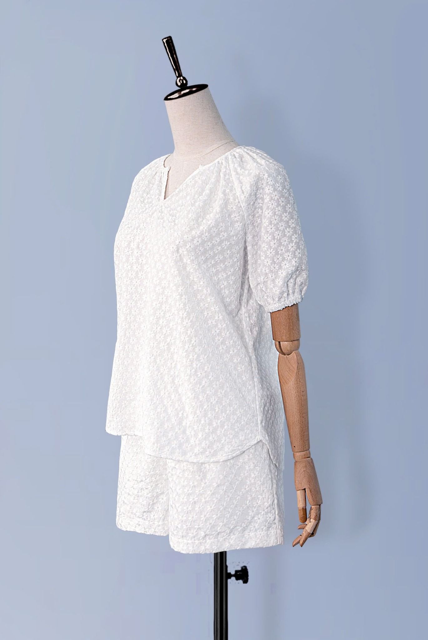 - Kiểu dáng: Set tay raplang, tay chun, quần short lưng chun