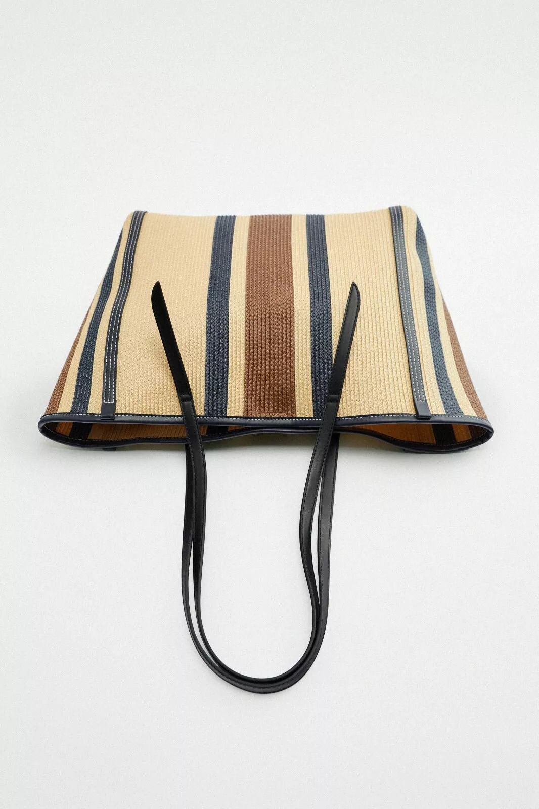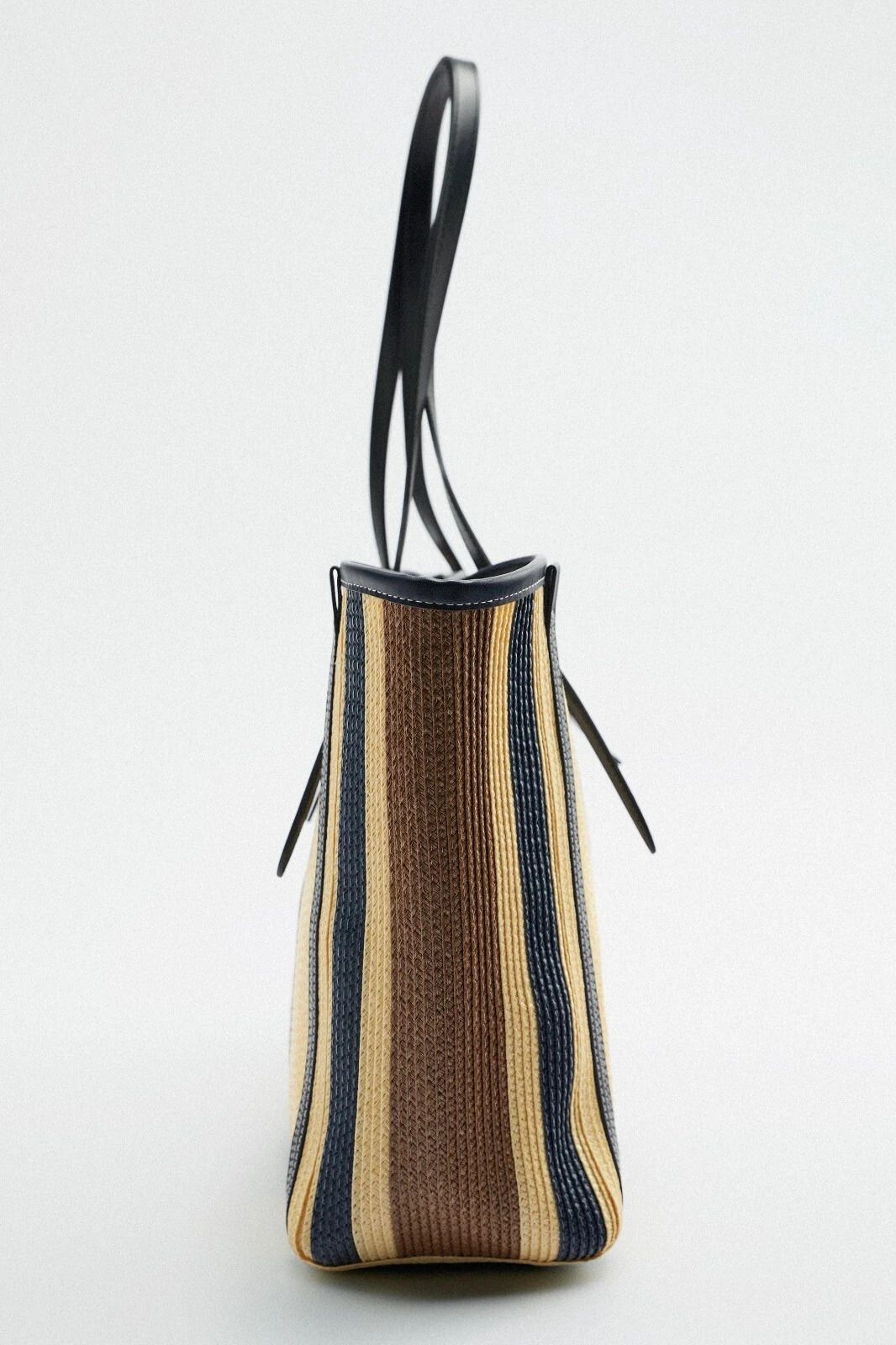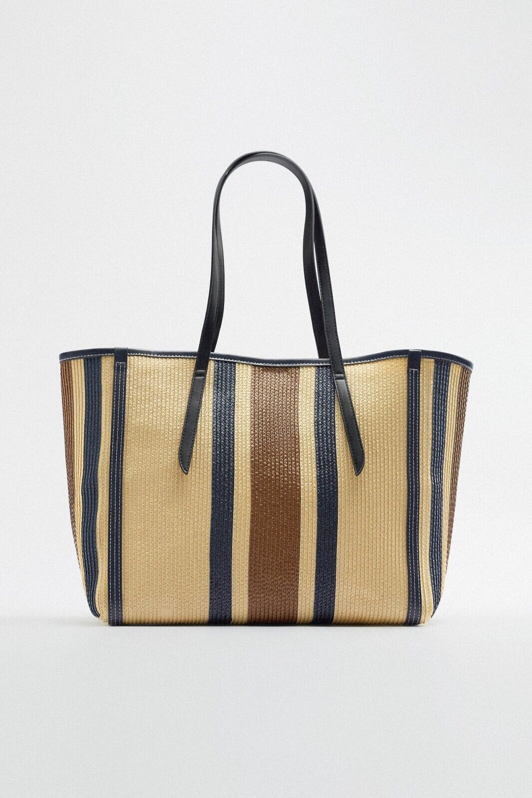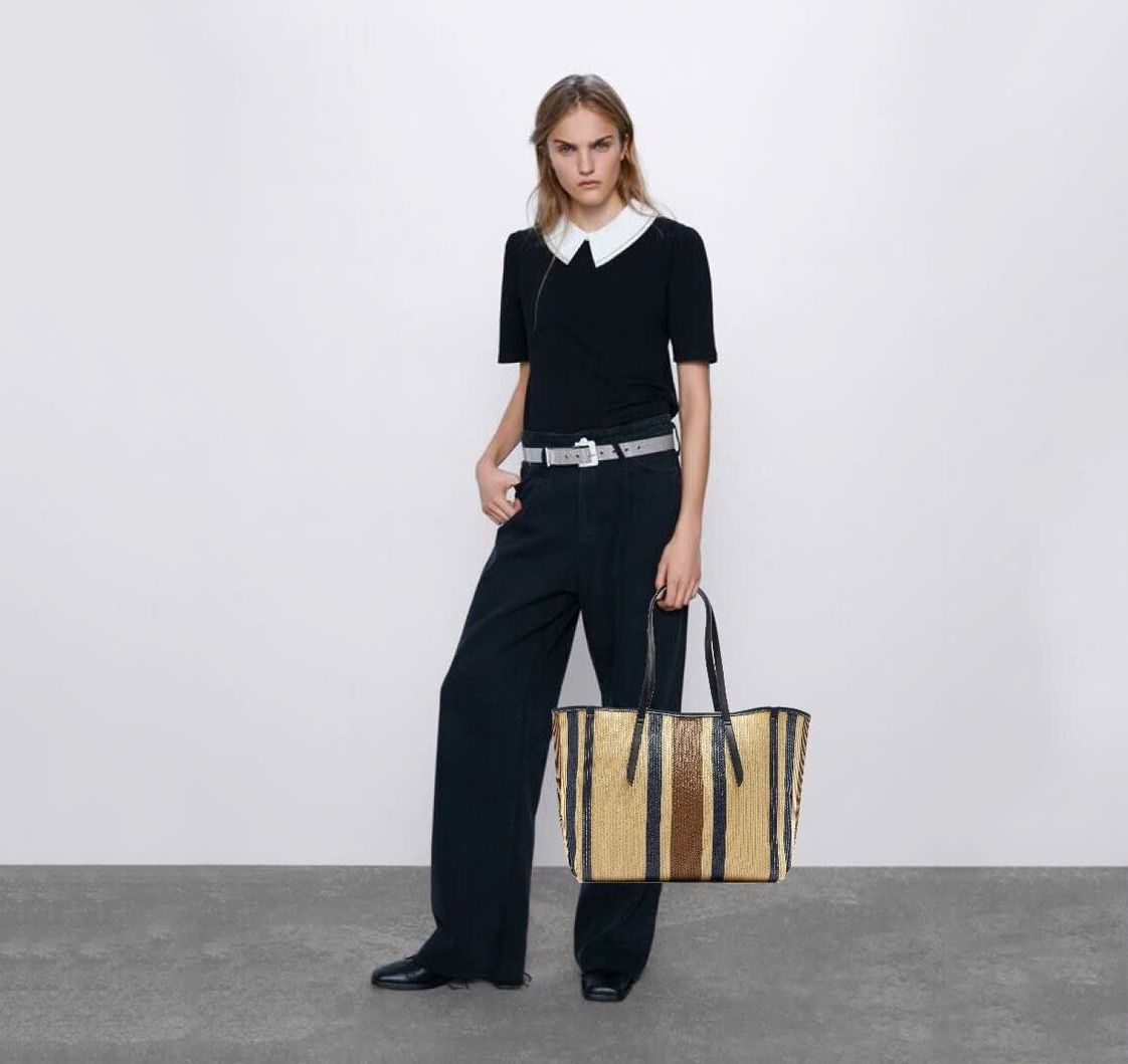 Túi tote kẻ sọc tương phản ZARA đẹp mắt với lớp vải dệt bên ngoài có màu tương phản. Lớn và rộng rãi. Nhẹ và chống thấm nước. Dây đeo vai dài thoải mái. Khóa từ.