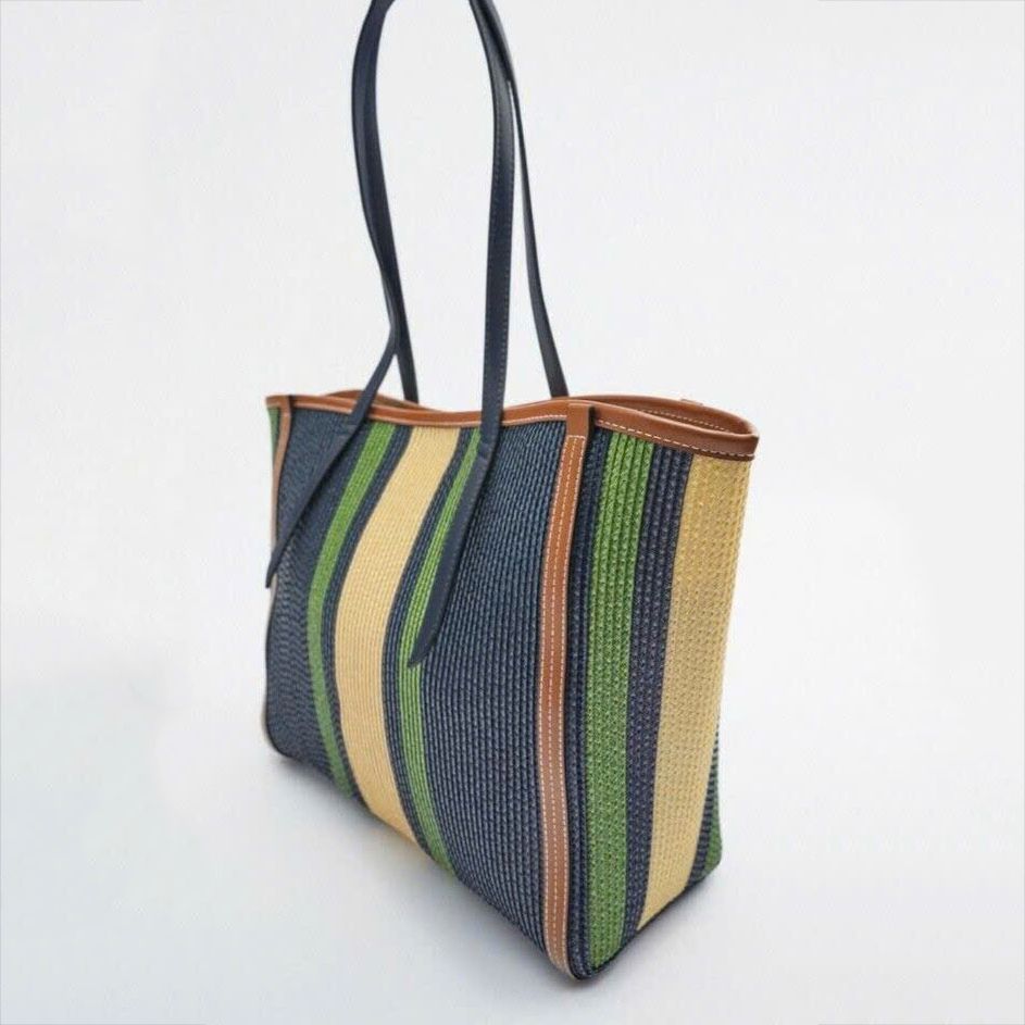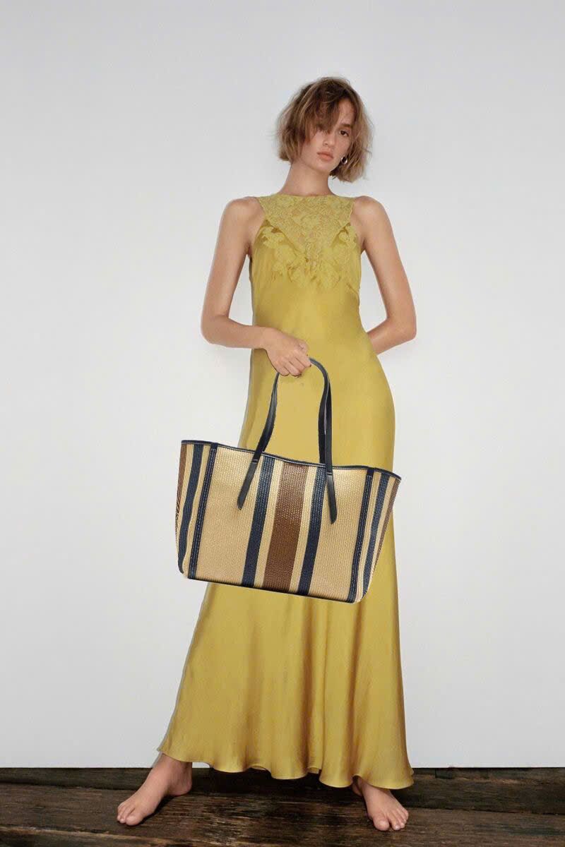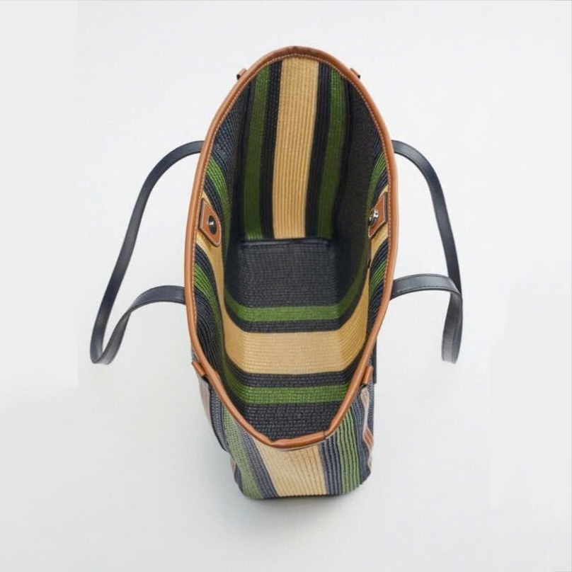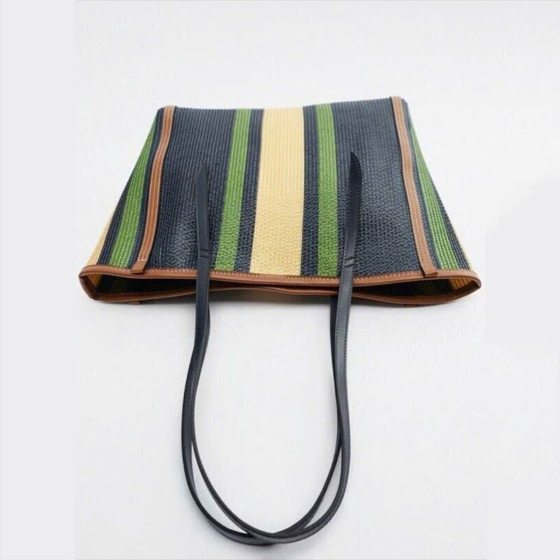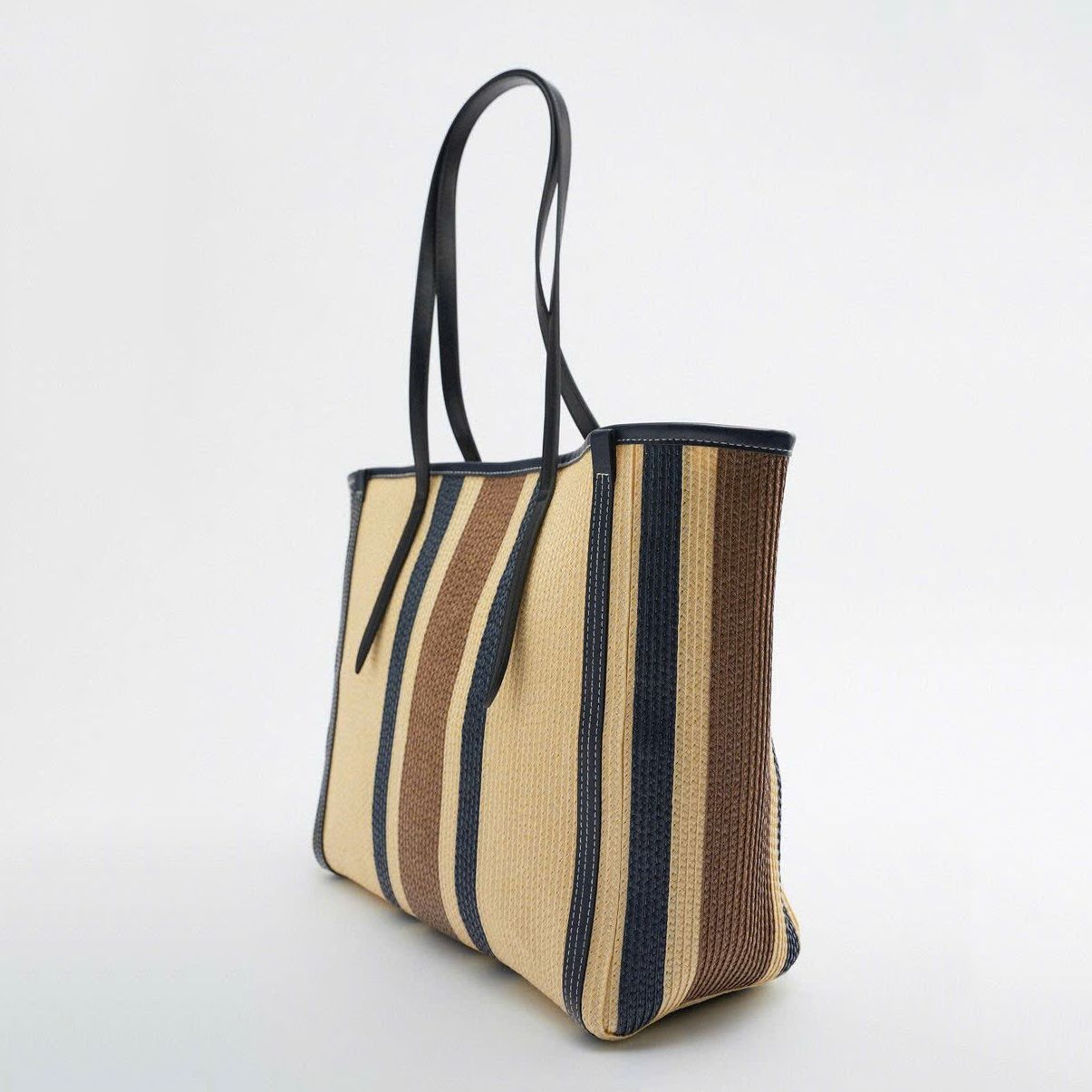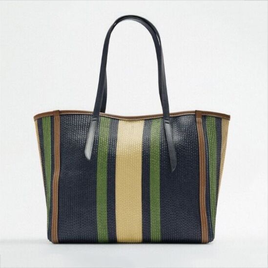 Túi tote kẻ sọc tương phản ZARA đẹp mắt với lớp vải dệt bên ngoài có màu tương phản. Lớn và rộng rãi. Nhẹ và chống thấm nước. Dây đeo vai dài thoải mái. Khóa từ.